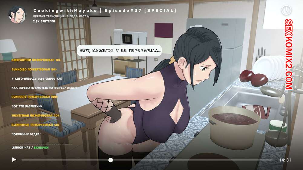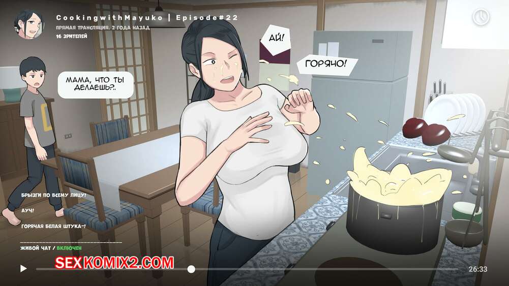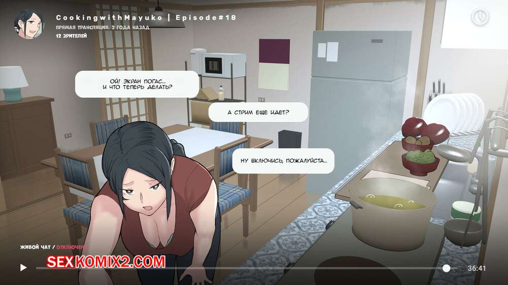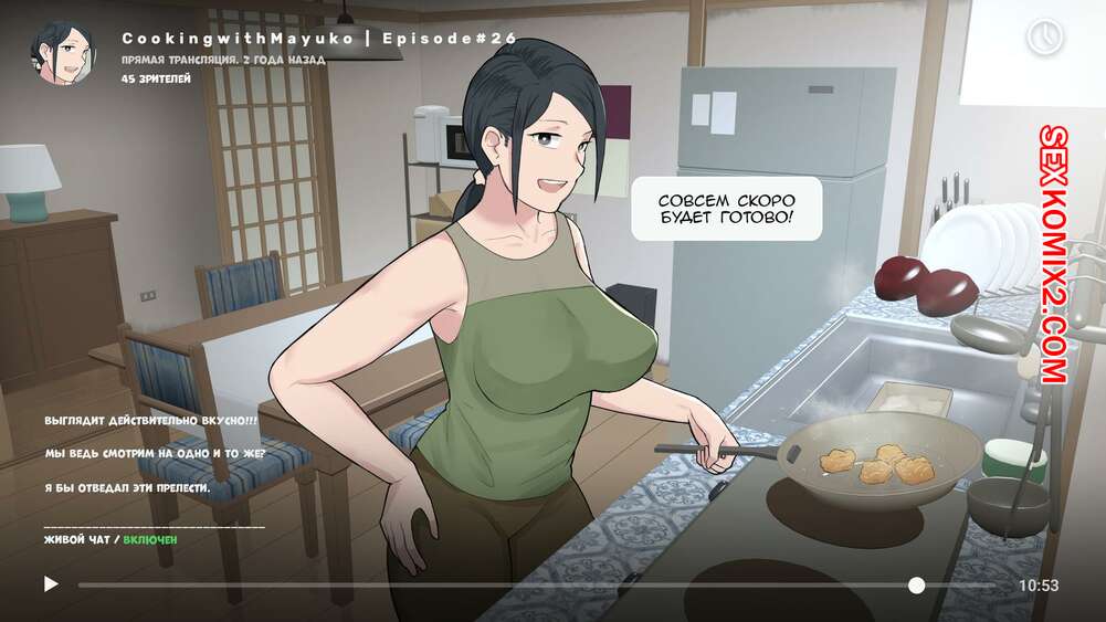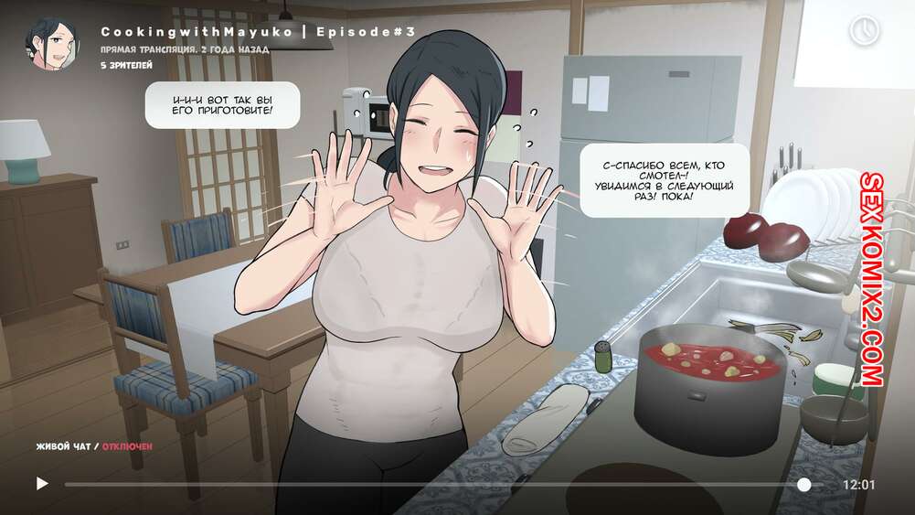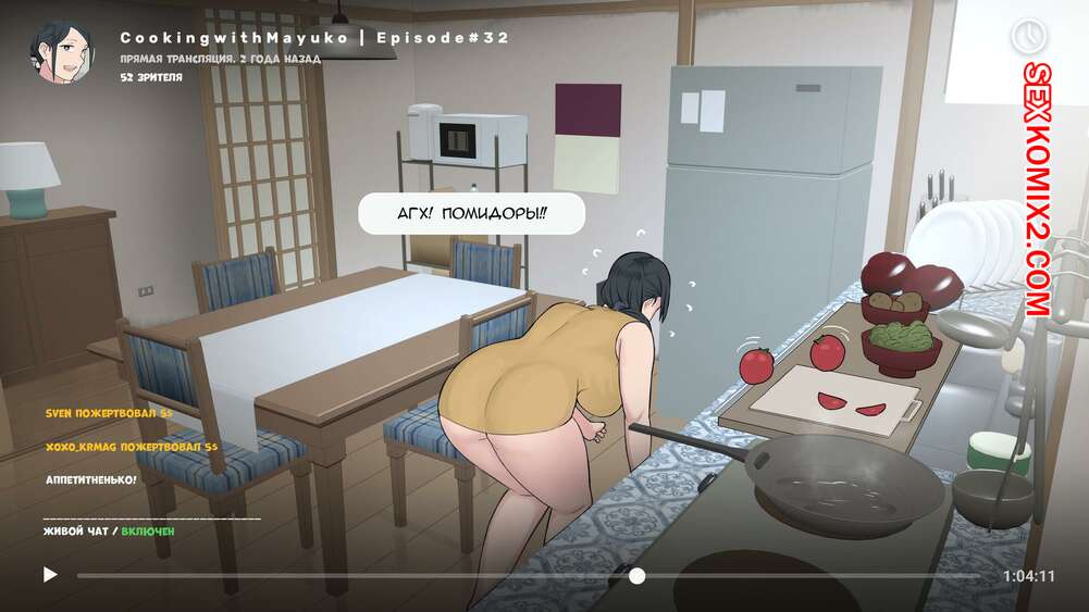 Порно комикс Готовка с Маюко. Часть 1. Ntrman Сисястая брюнетка милфа занималась готовкой на кухне и снимала все на видео. Дама сильно возбудилась, поэтому она разделась и стала ласкать свою пизденку.