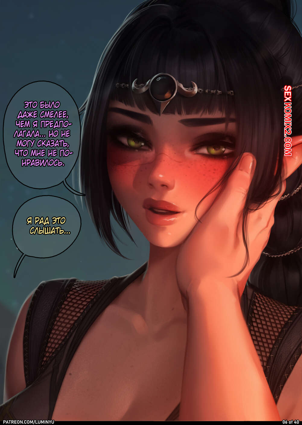 Порно комикс Baldurs Gate. Шэдоухарт. Shadowheart. LumiNyu Сексуальная брюнетка была очень возбуждена и хотела трахаться. Девушка разделась и отсосала большой хуй своего дружка, после чего дала ему выебать свою пизденку.