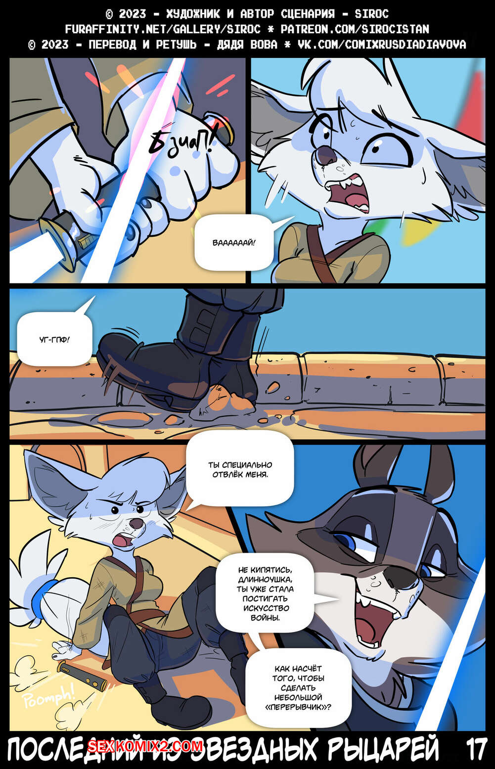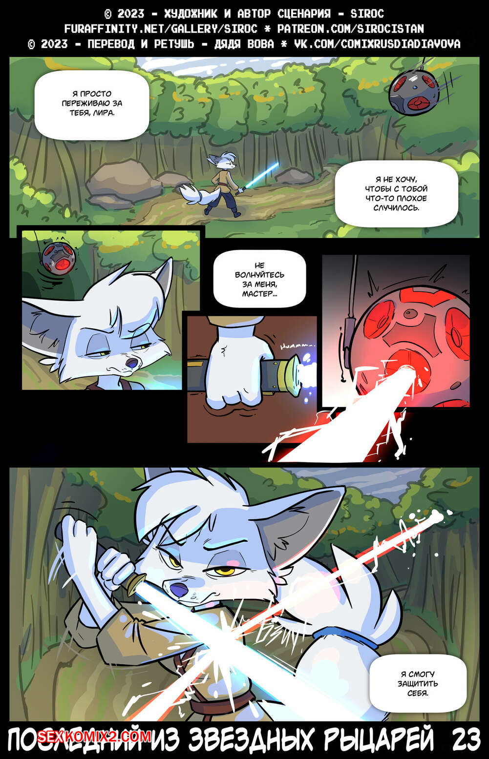 Порно комикс Последний из звездных рыцарей. The Last Star Knight. Siroc Девушка была очень возбуждена и решила повеселиться со своим дружком. Она разделась и отсосала большой хуй парня, после чего дала ему выебать свою пизденку.