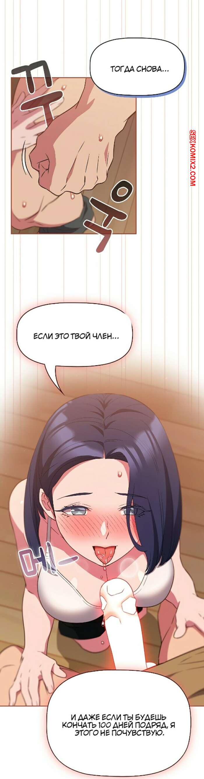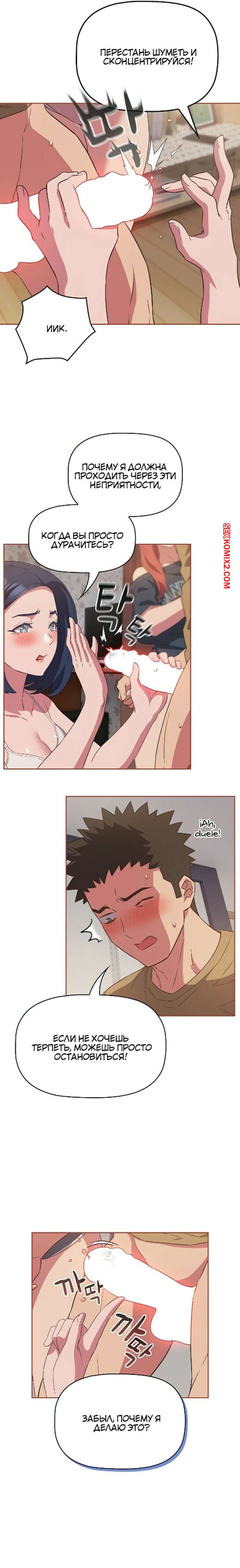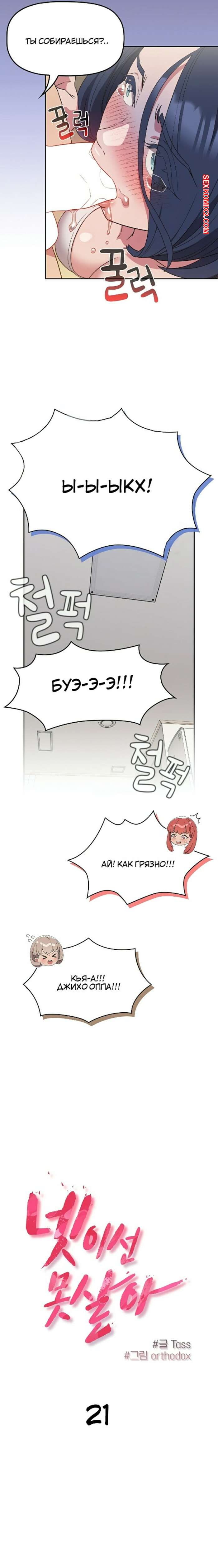 Порно комикс Я не смогу жить вчетвером. Часть 19 и 20 и 21. I cant live with you four Горячая брюнетка была очень возбуждена и решила повеселиться со своим дружком. Пока подруги держали парня, брюнеточка встала на колени и стала сосать большой хуй парня.