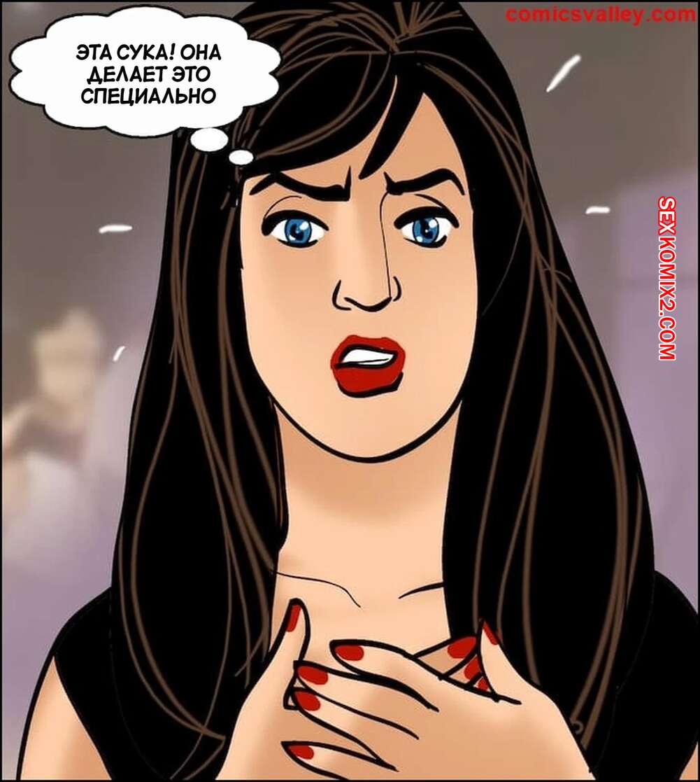 Порно комикс Веена. Часть 13. Veena. Velamma Сисястая брюнетка милфа пришла в клуб, где положила глаз на симпатичного парня. Она пошла с ним в туалет, где отсосала большой хуй парня и дала ему выебать свою пизденку.