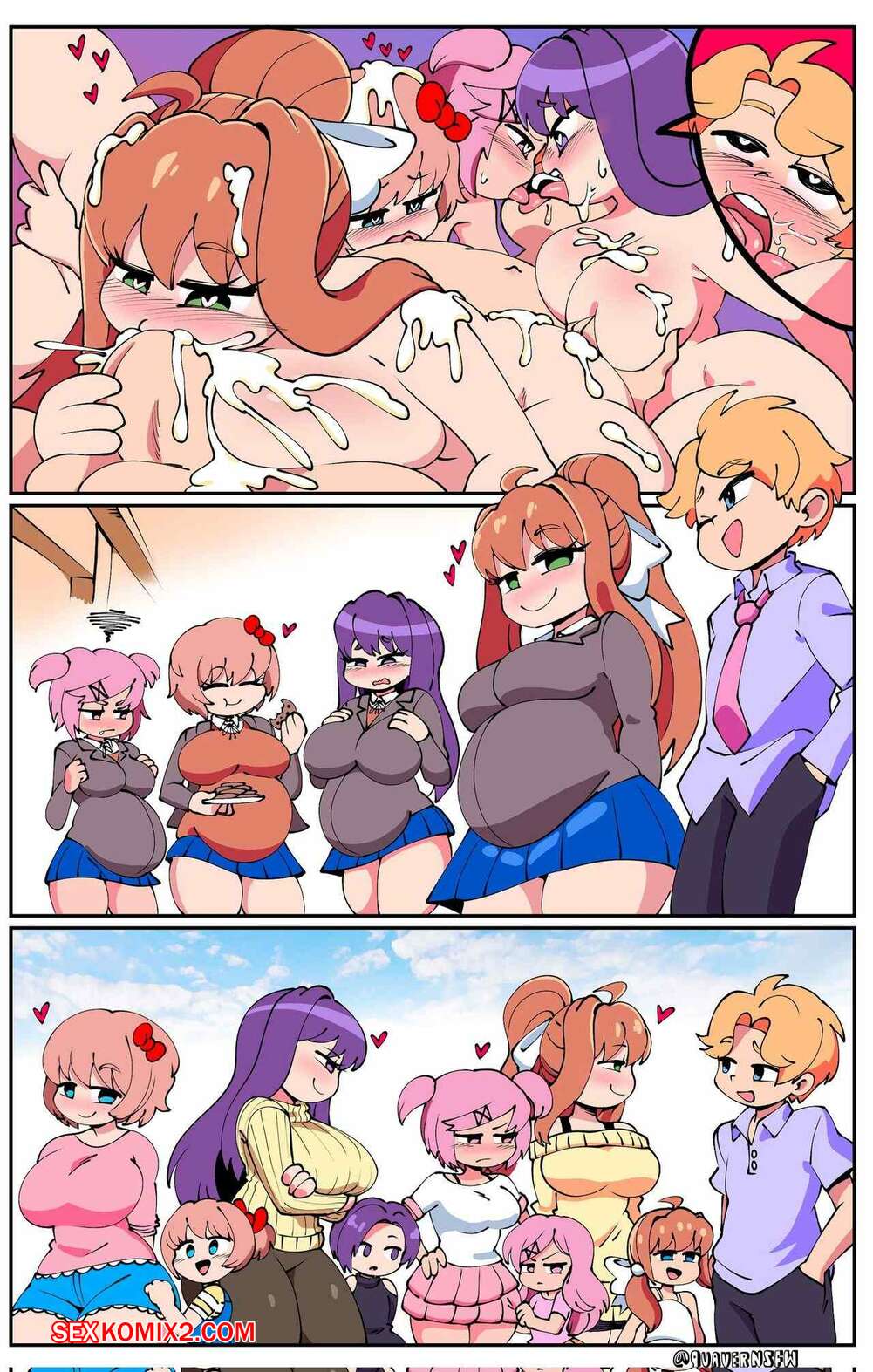 Порно комикс Senpai X DDLC Girls. Quaver Горячие красотки были очень возбуждены и решили повеселиться со своим дружком. Они разделись и возбудили парня своими шикарными телами, после чего дали ему себя выебать.