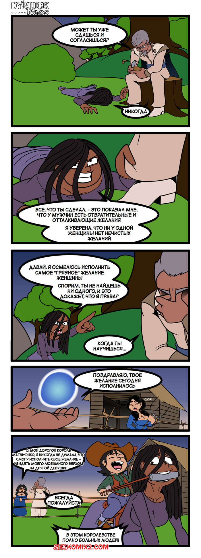Порно комикс Желание. Wish. Dyriuck Kaos. Мужики были очень возбуждены и пожелали повеселиться с сексуальными юными девушками. Они раздели красоток и хорошенько выебали их во все дырочки, получив огромное удовольствие.