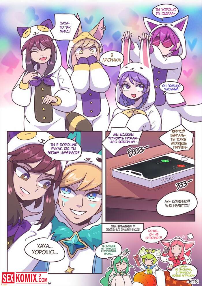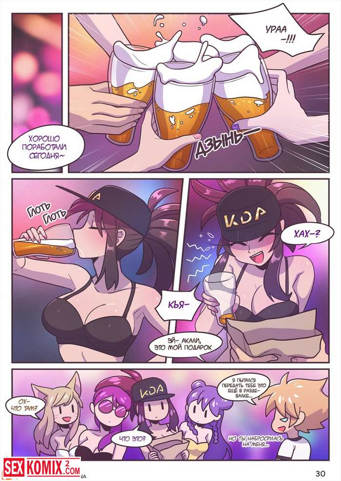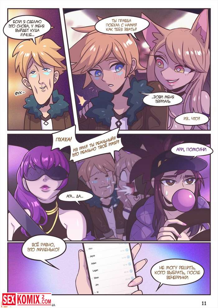 Порно комикс После вечеринки. Лига легенд. Девушки из поп группы после концерта решили отдохнуть и пригласили парней к себе домой, для развлечений.
