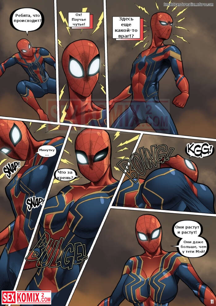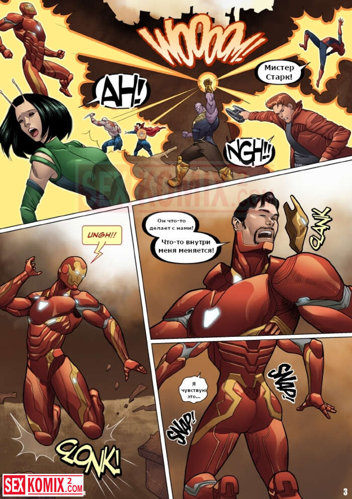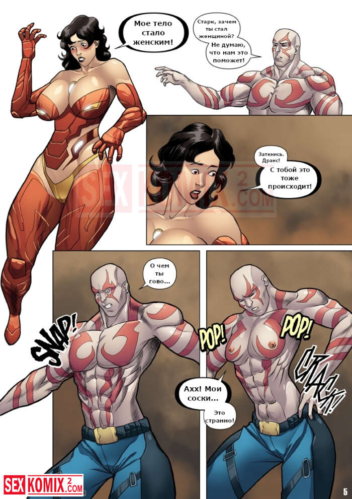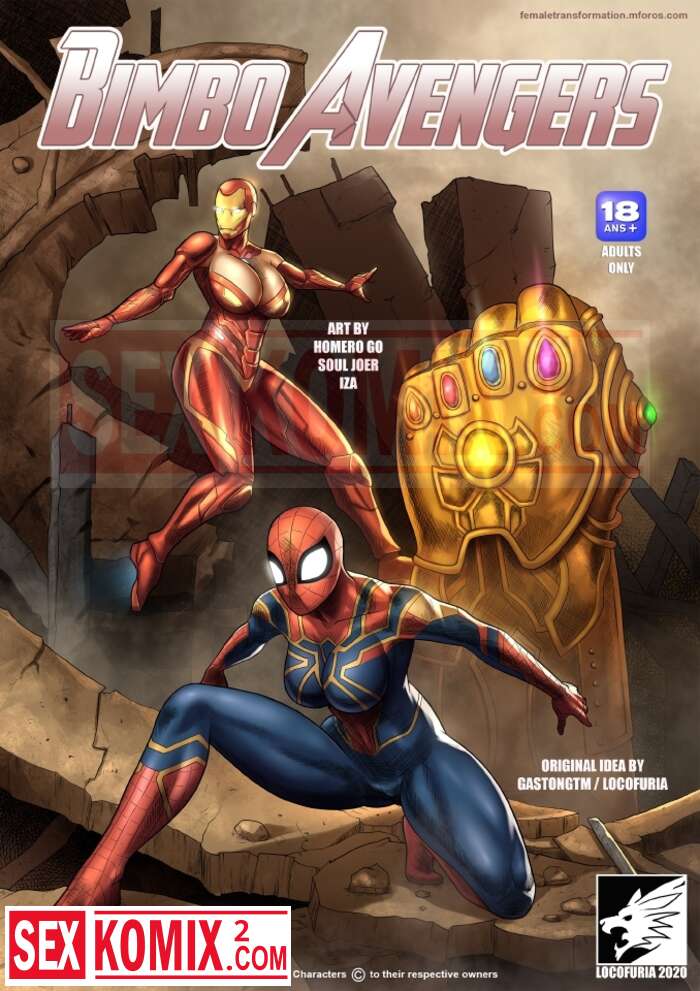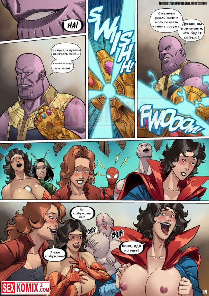 Порно комикс Женские мстители. Locofuria. Во время битвы с Таносом на Титане. Он применил камень реальности и превратил всех героев в женщин.
