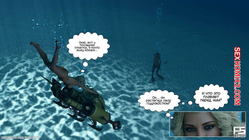 Порно комикс Бесплатное сексуальное погружение. Free Sexual Drive. Pegasus Smith. Сисястая блондинка мечтает о погружении в океан абсолютно голой. Спустившись поглубже, девушка застала одного из дайверов, который ей помогал, за дрочкой. Красотку это очень возбудило и она решила пососать большой хуй парня.