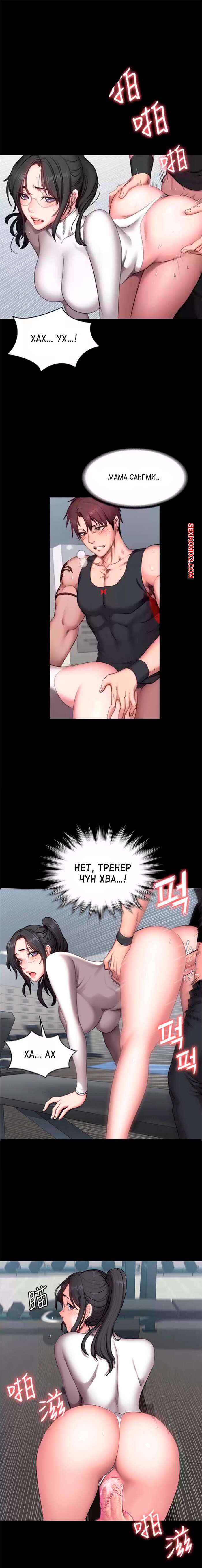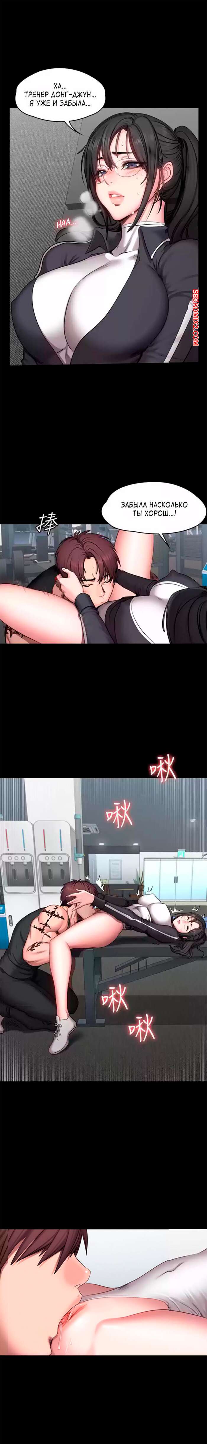 Порно комикс Фитнес. Без цензуры. Часть 52 и 53 и 54. Fitness Горячая брюнетка была очень возбуждена и хотела трахаться. Она разделась перед парнем и отсосала его большой хуй, после чего дала парню выебать свою пизденку.
