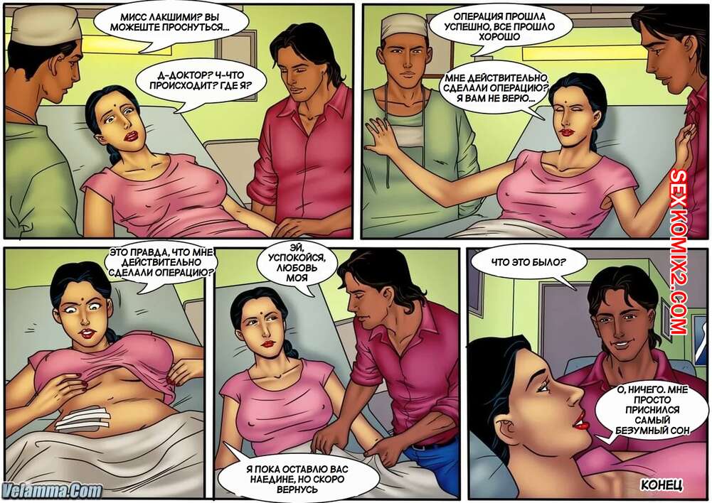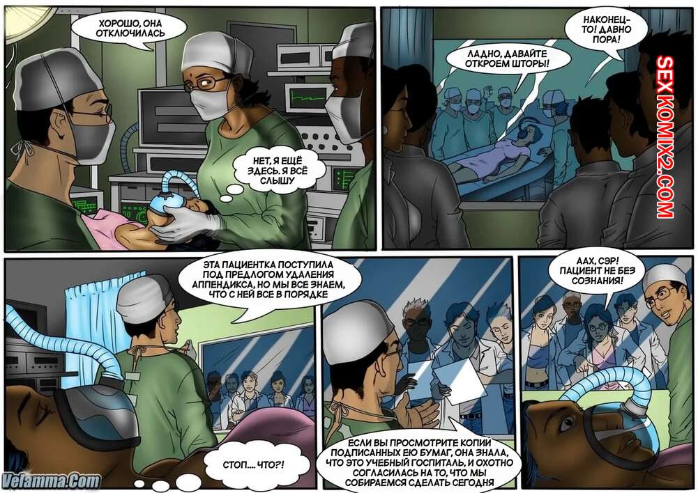 Порно комикс Сны Веламмы. Часть 8. Velamma Dreams. Kirtu Сисястая милфа Веламма попала в больницу, где с ней решили повеселиться парни врачи. Они раздели красотку и дали ей отсосать свои большие хуи, после чего выебали ее во все дырочки.