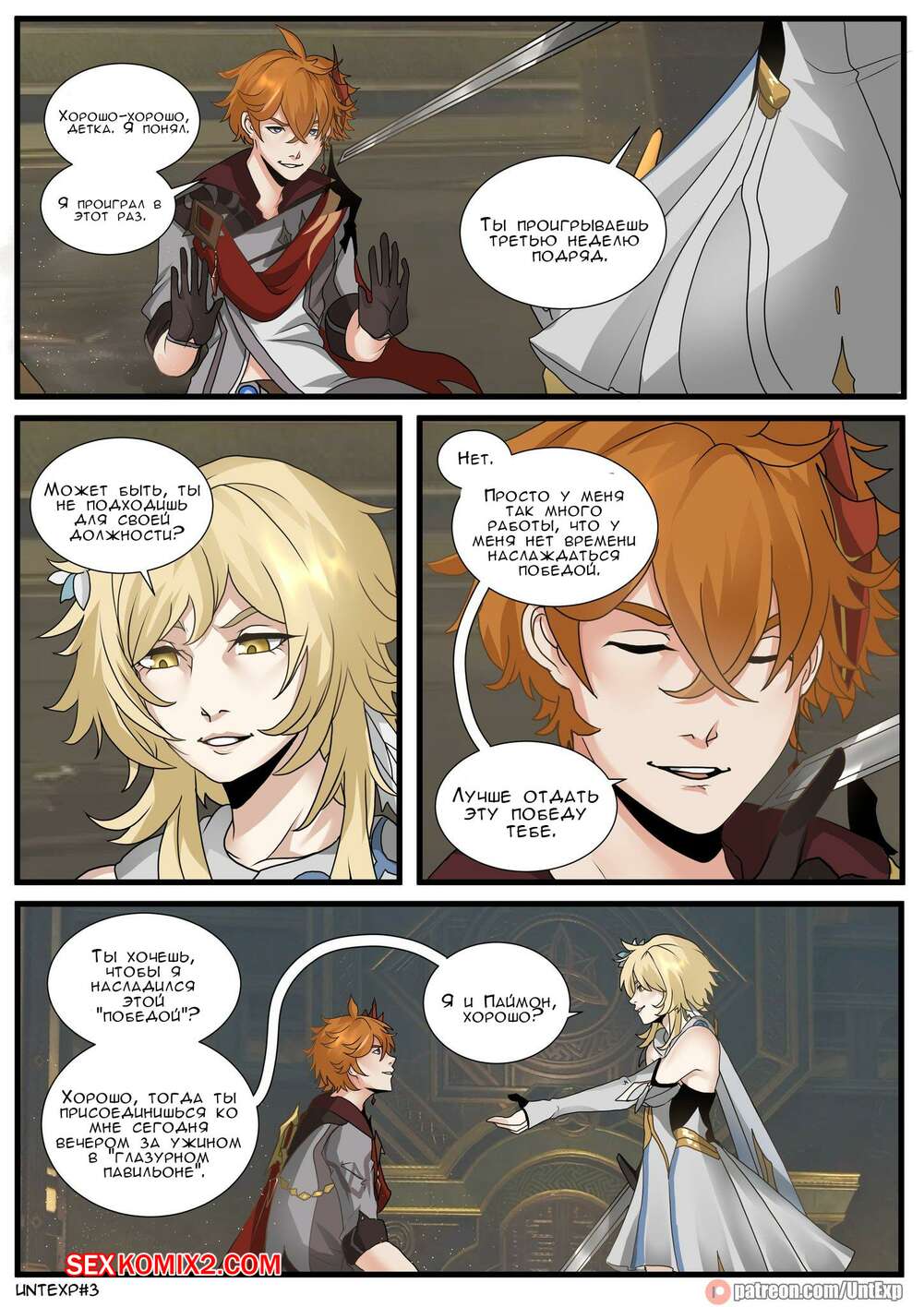Порно комикс Genshin Impact. Победа. UntitledExpression Парень был очень возбужден и решил повеселиться со своей сексуальной подругой. он раздел девушку и отлизал ее пизденку, доставив девушке огромное удовольствие.