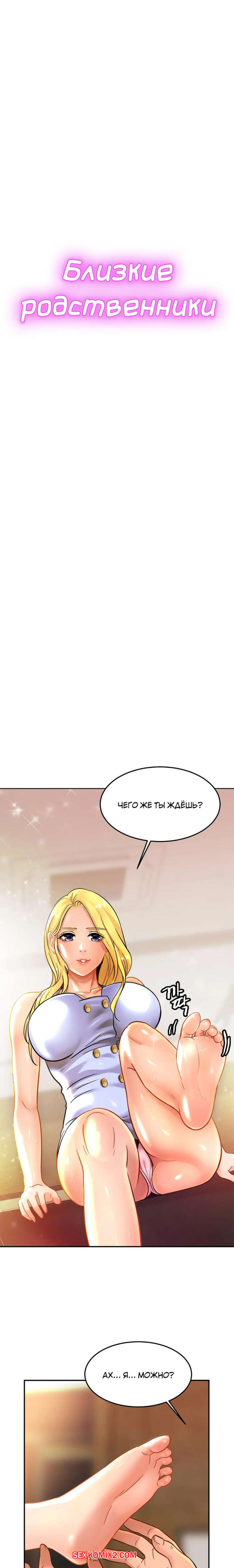 Порно комикс Близкие родственники. Часть 25 и 26 и 27. Close Family Горячая блондинка была очень возбуждена и решила повеселиться со своим дружком. Она дала ему полизать свои ножки, после чего залезла под стол к парню и стала сосать его хуй.