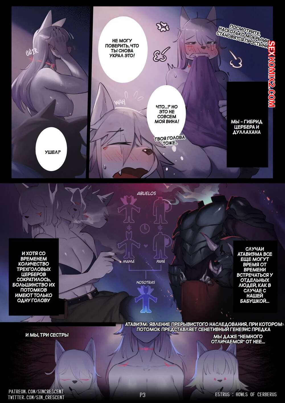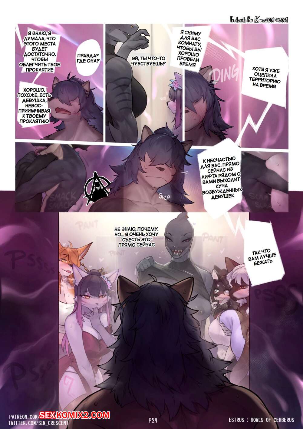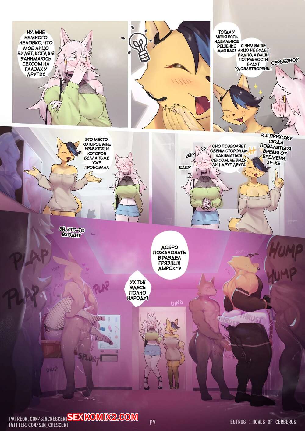Порно комикс Эструс. Вой Цербера. Estrus. Howls Of Cerberus. SinCrescent. Горячая блондинка фурри без ума от большого члена своего дружка. Красотка раздвинула ножки и дала парню отлизать свою пизденку, после чего он хорошенько ее выебал.