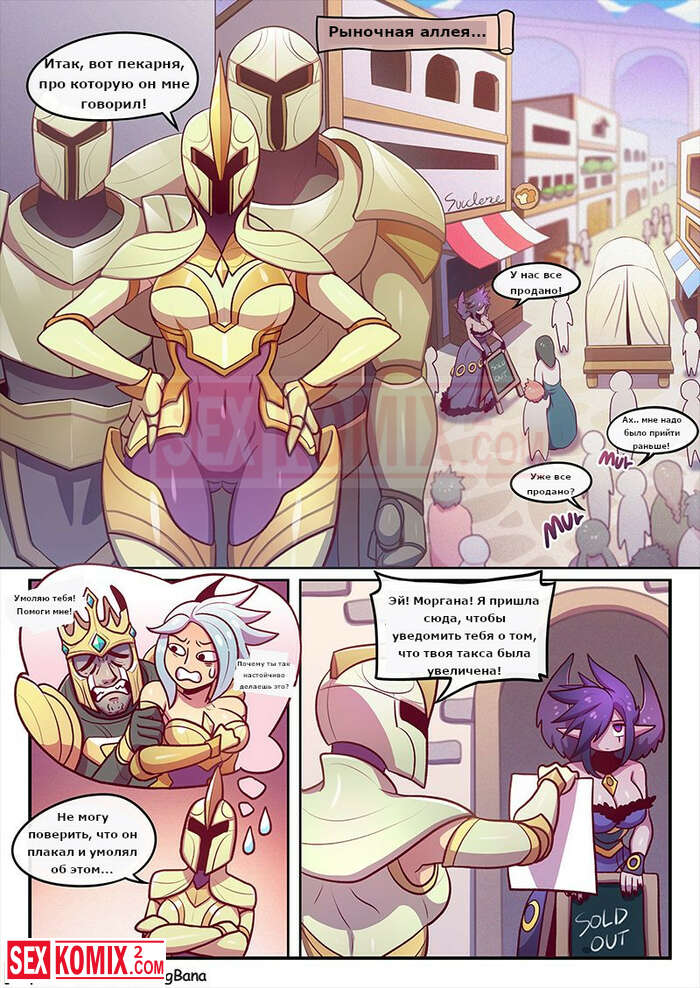 Порно комикс Сочный грех. Лига легенд. Strong Bana. Городская стража напала на волшебницу и требовали плату, но эта женщина не так проста она сковала их своей магией и решила развлечься с парнями.