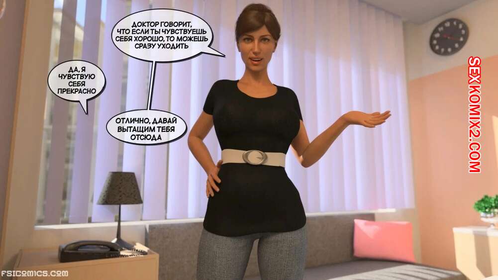 Порно комикс Визит в семью. Часть 5. Эпизод 3. The Visit Family. Stiglet Сисястая милфа медсестра пришла в палату к парню в сексуальном белье, желая с ним повеселиться. Красотка разделась и оседлала хуй парня, чтобы он ее хорошенько выебал.