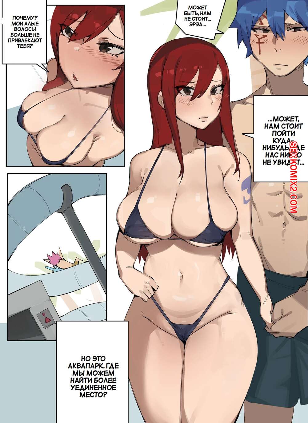 Порно комикс Эрза и Желлал. Erza x Jellal. Elijahzx Горячая брюнетка была очень возбуждена и решила повеселиться со своим дружком. Она разделась и дала парню пососать свои большие сиськи, после чего он выебал пизденку подруги и кончил в нее.