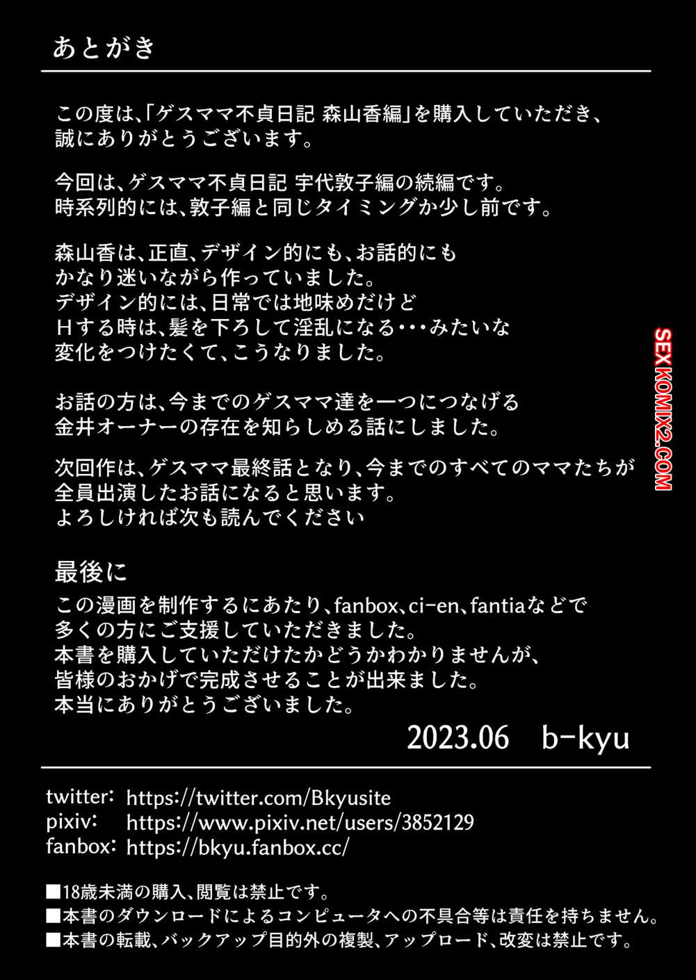 Порно комикс Gesu Mama Futei Nikki. Часть 3. Bkyu Сисястая брюнетка милфа обожает трахаться. Она раздевается перед своими дружками с большими хуями и хорошенько у них отсасывает, после чего дает им себя выебать, получая огромное удовольствие.