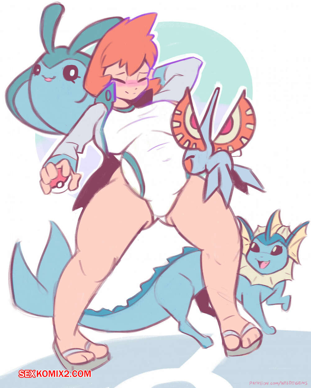 Порно комикс Misty Preggo Month. WildeGems Горячая рыжая красотка обладает шикарным телом, которое привлекает внимание ее дружков покемонов. Они заключают девушку в свои объятия, после чего веселятся с ней.