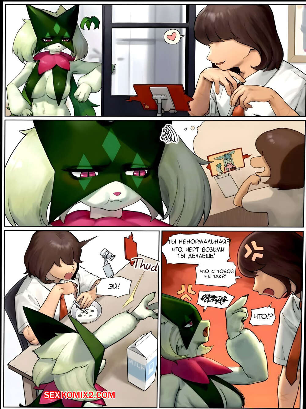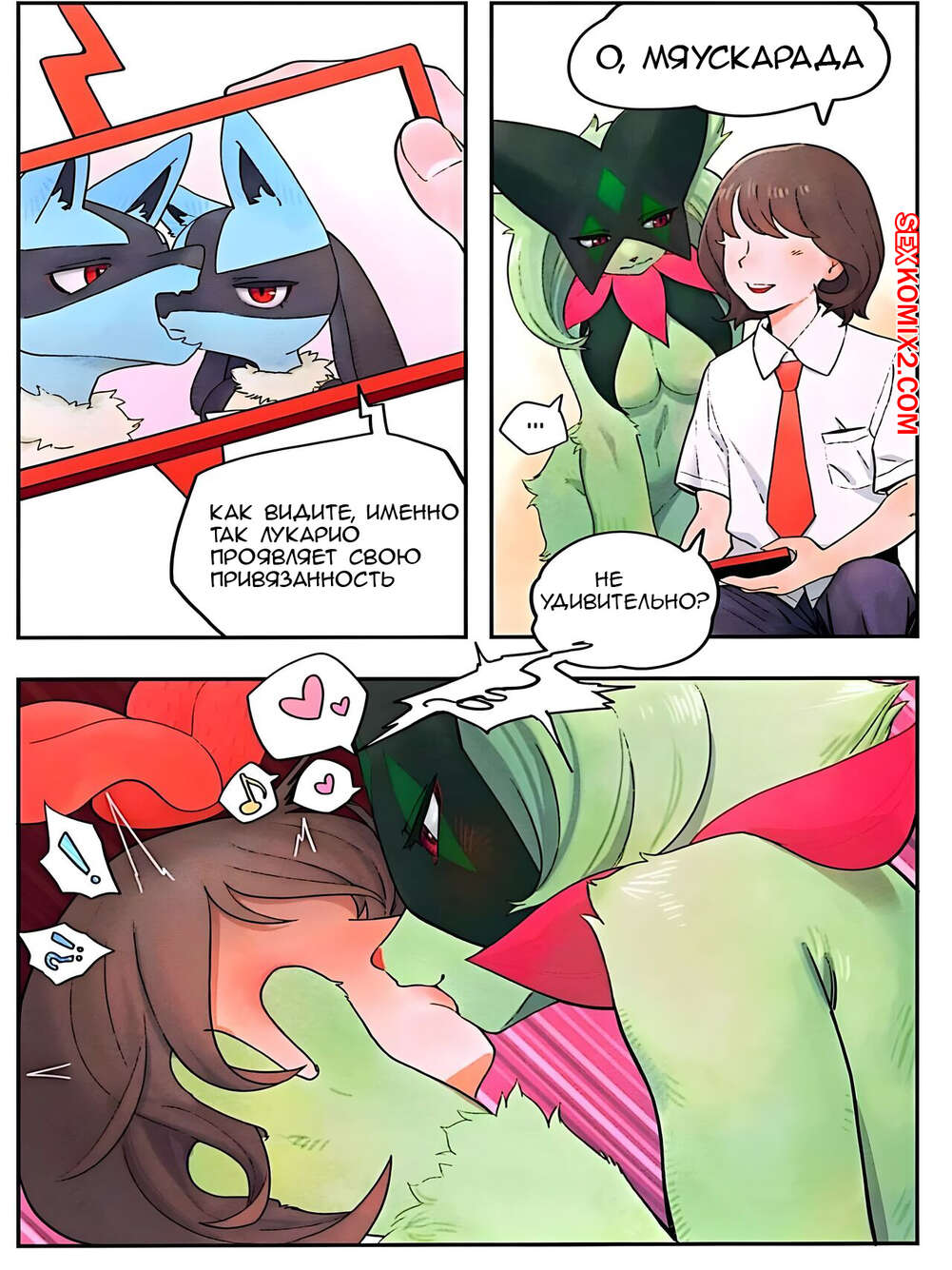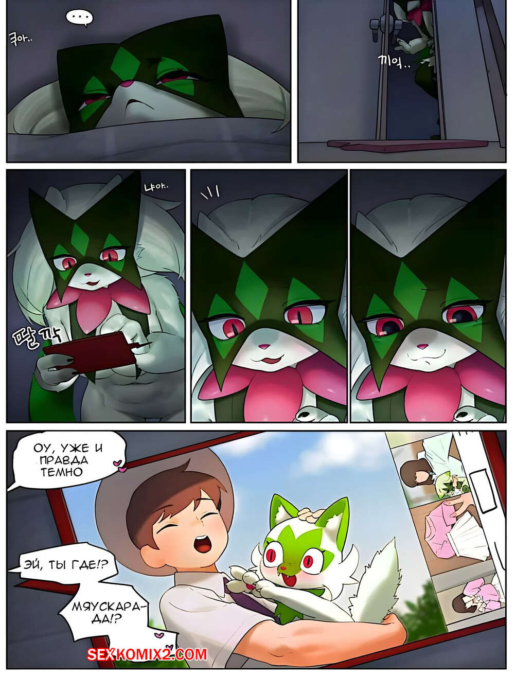 Порно комикс Pokemon. Скрытые чувства Мяускарады. Gudl Горячая красотка покемон была очень возбуждена и решила повеселиться со своим дружком. Она разделась перед парнем и возбудила его шикарным телом, после чего дала ему себя выебать.