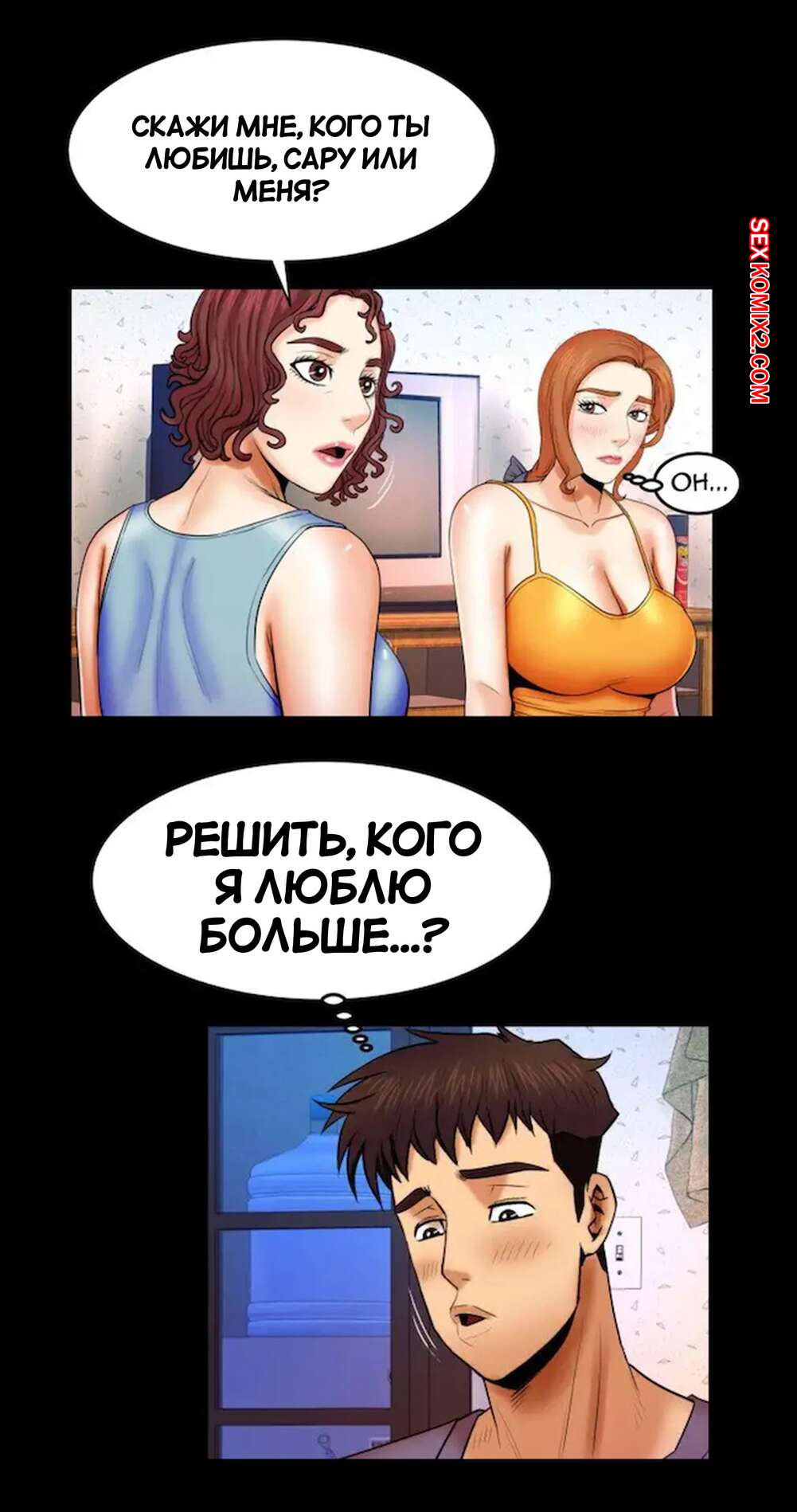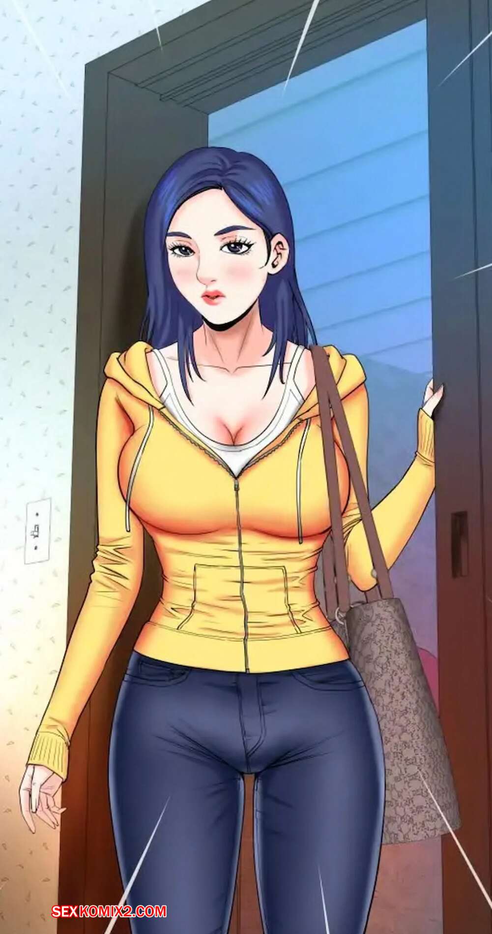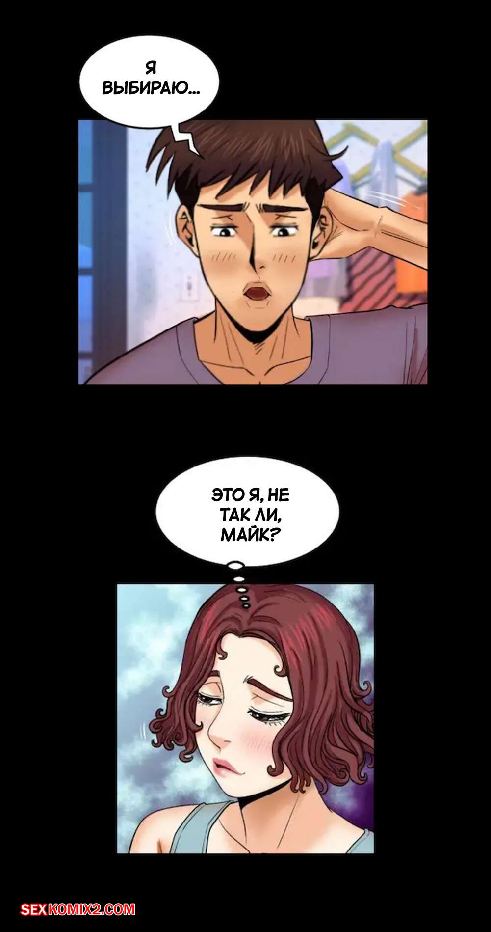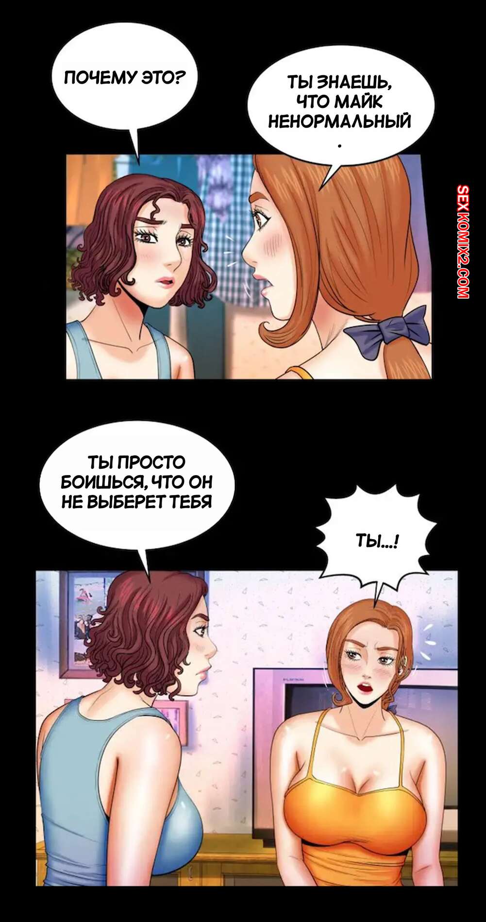 Порно комикс Моя тетя. Без цензуры. Часть 18. My Aunt. Toomics Горячая сисястая брюнетка застала парня в туалете и возбудилась, увидев его огромный член. Девушка легла спать и стала ласкать себя, представляя секс со своим дружком.