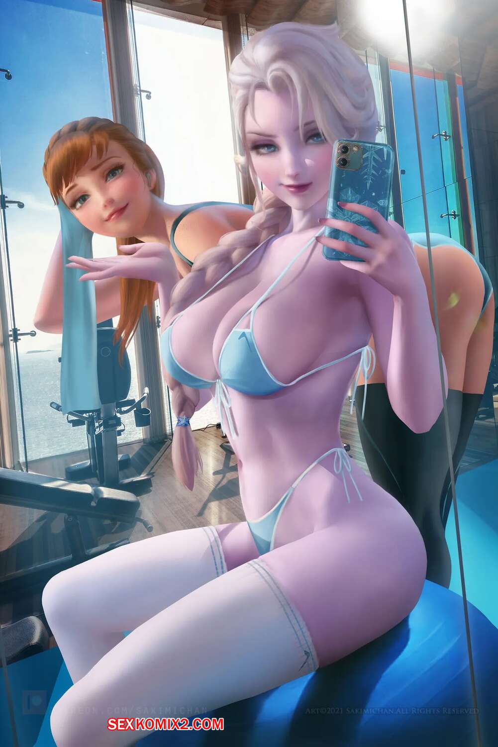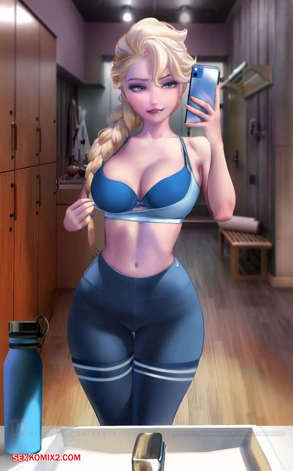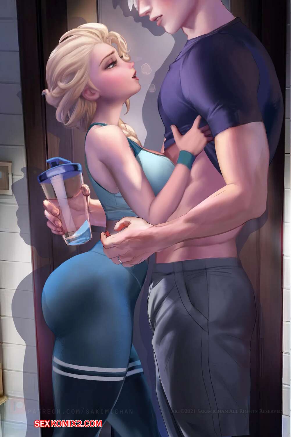 Порно комикс Эльза. Frozen. Sakimichan. Горячая блондинка Эльза была очень возбуждена и решила повеселиться со своим дружком. Девушка разделась и отсосала большой хуй парня, после чего дала ему выебать свою пизденку.