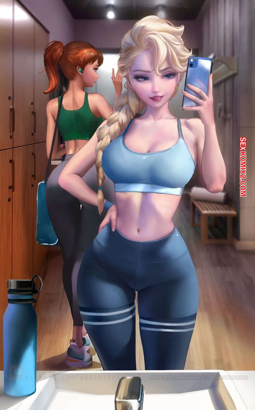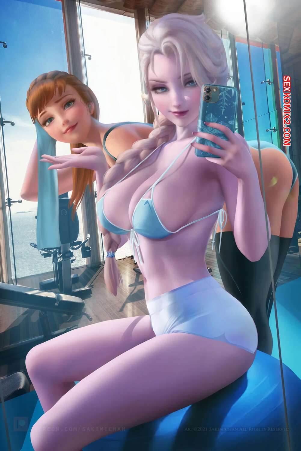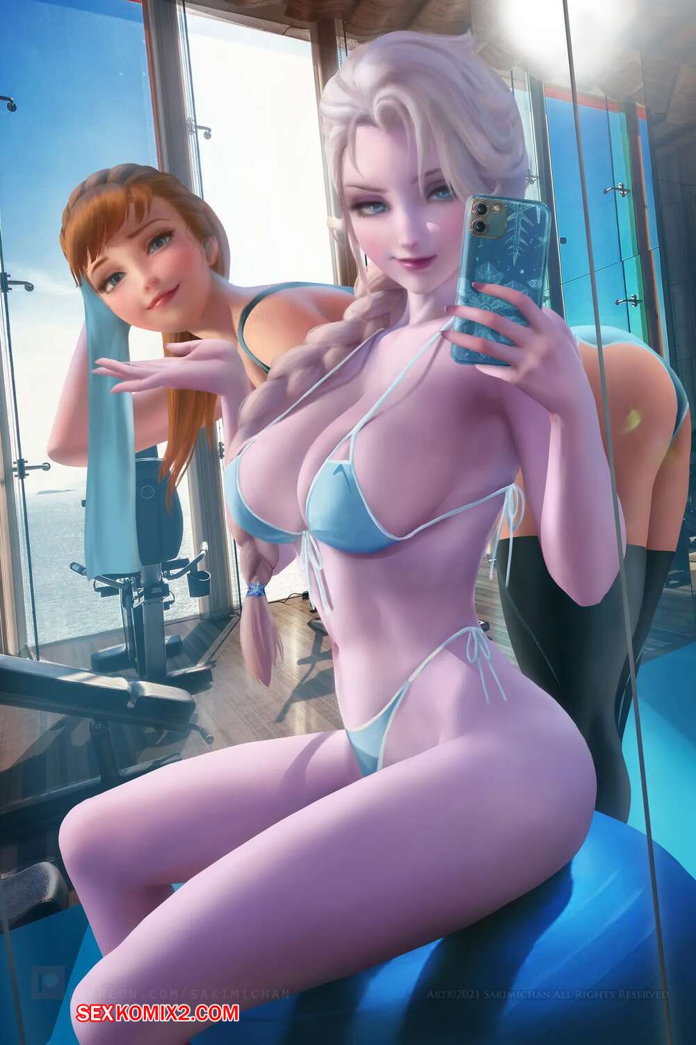 Порно комикс Эльза. Frozen. Sakimichan. Горячая блондинка Эльза была очень возбуждена и решила повеселиться со своим дружком. Девушка разделась и отсосала большой хуй парня, после чего дала ему выебать свою пизденку.