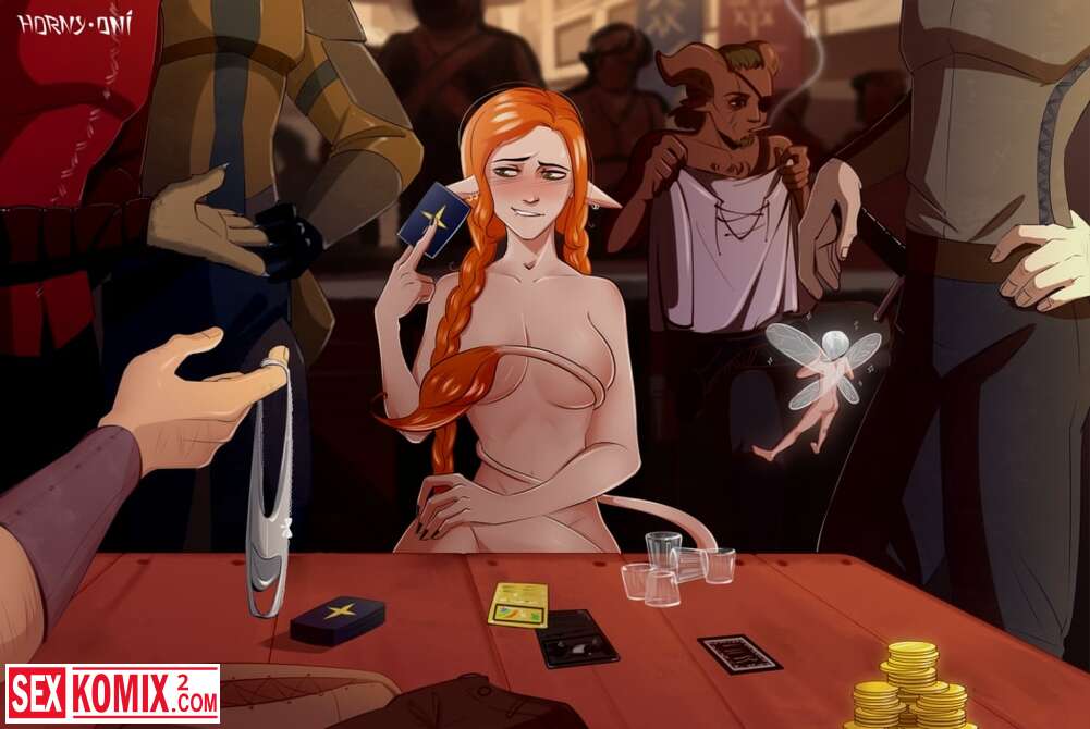Порно комикс В карты на раздевание. Рыжеволоса девушка забрела в бар и ввязалась в карточную игру. Она поставила на кон свою пизду и проиграла. Теперь парни трахают её толпой.