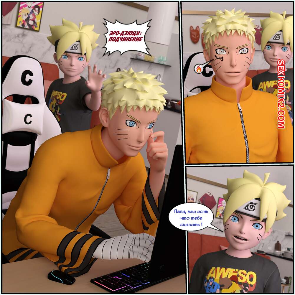 Порно комикс Naruto. Боруто и свиток Джирайи. Часть 5. Boruto and the Jiraiya Scroll. Darkfaust Горячая милфа Хината отправилась ночью в комнату к Боруто, чтобы повеселиться с сыном. Красотка разделась и отсосала большой хуй парня, после чего дала ему себя хорошенько выебать.
