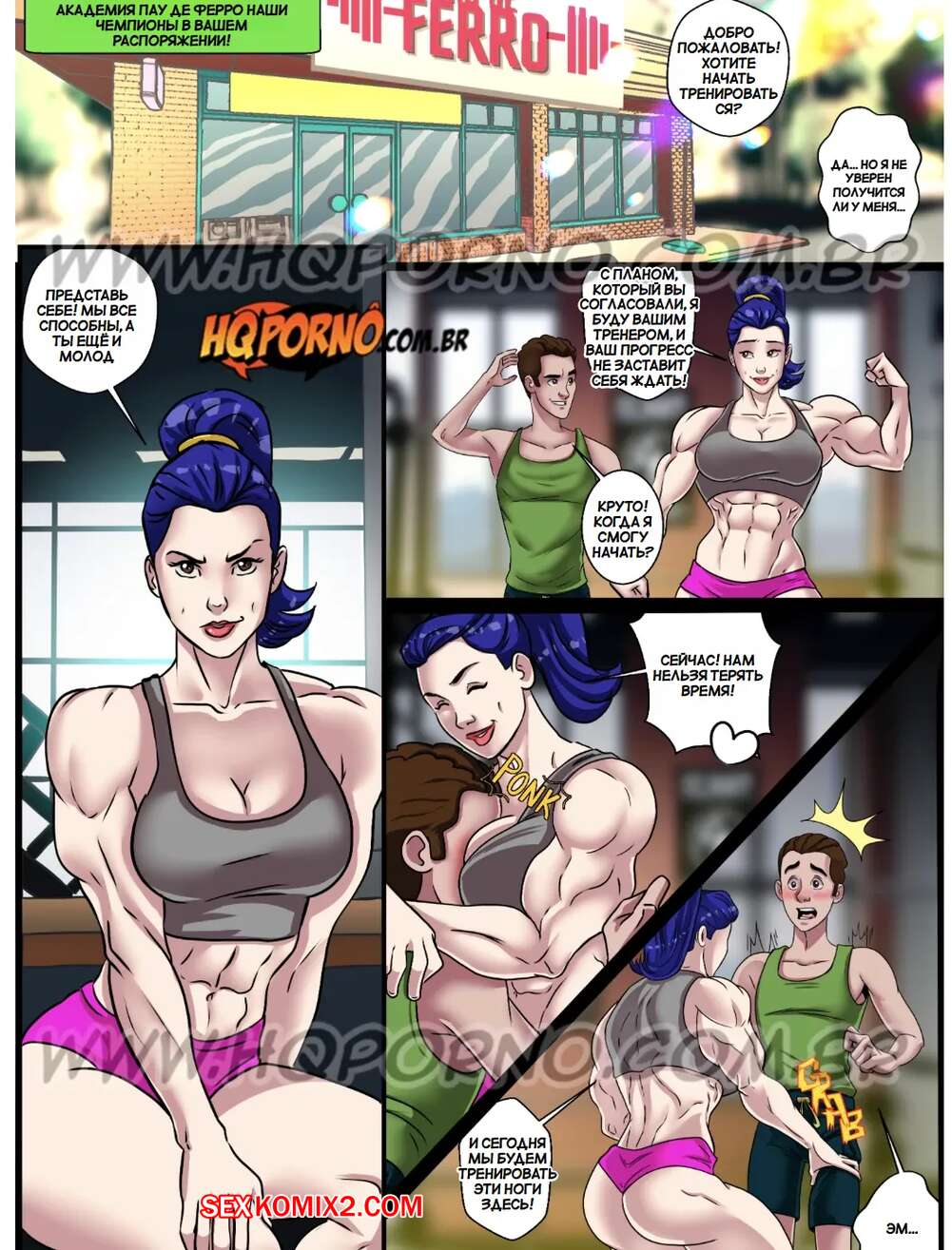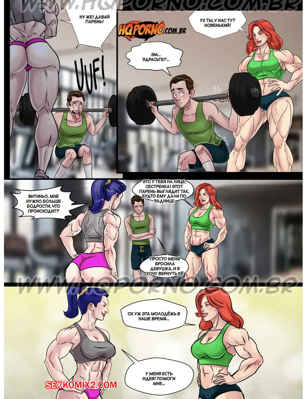 Порно комикс Маромбейрас. Часть 1. Приключение Франго. As marombeirasa. HQPorno Во время тренировки в зале горячие красотки были поражены размером члена слабенького парня. Они разделись и стали сосать огромный хуй паренька, после чего дали ему себя выебать.