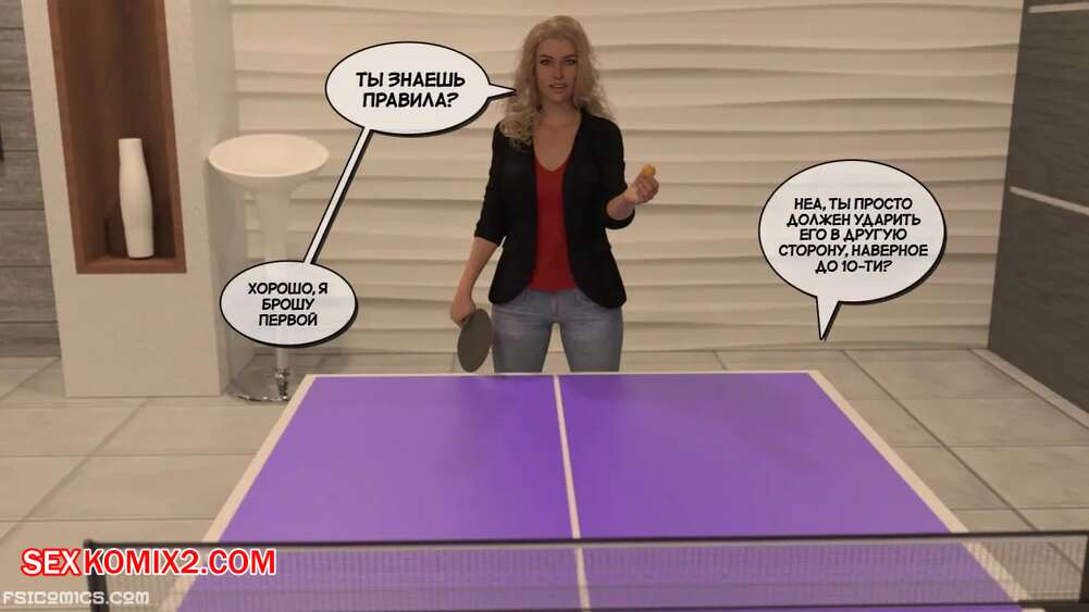 Порно комикс Визит в семью. Часть 10. Эпизод 2. The Visit Family. Stiglet Горячая блондинка милфа предложила парню повеселиться и сыграть в пинг понг. Затем девушка разделась и раздвинула ножки перед молодым парнем, после чего дала ему себя выебать.