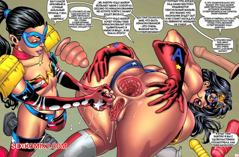 Порно комикс Мисс Американа и Чудо девушка. Ms Americana and Wonder Girl. SuperHeroineComiXXX Горячие красотки были очень возбуждены и решили повеселиться. Красотки разделись и стали ласкать друг дружку, после чего они встретили парней с большими хуями, которые выебали их во все дырочки.