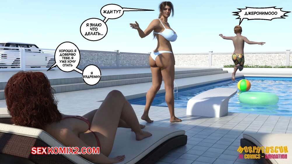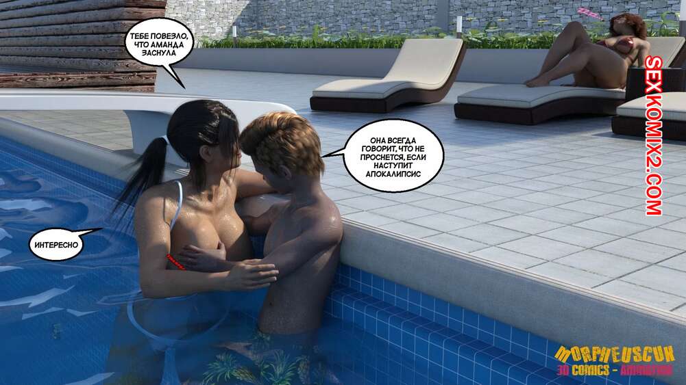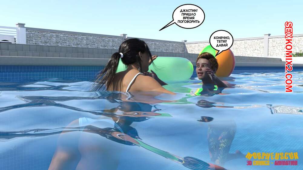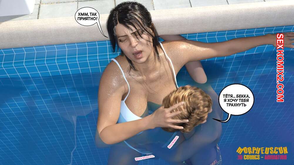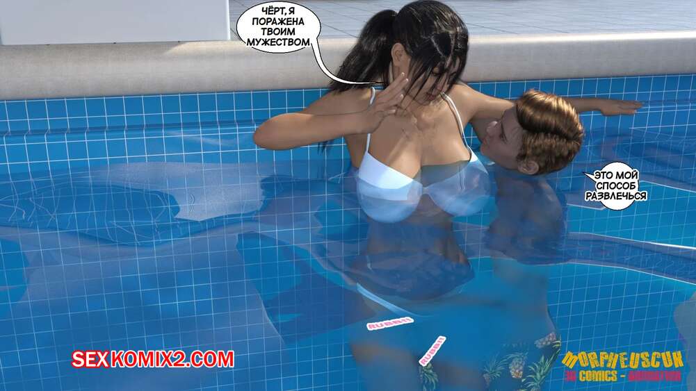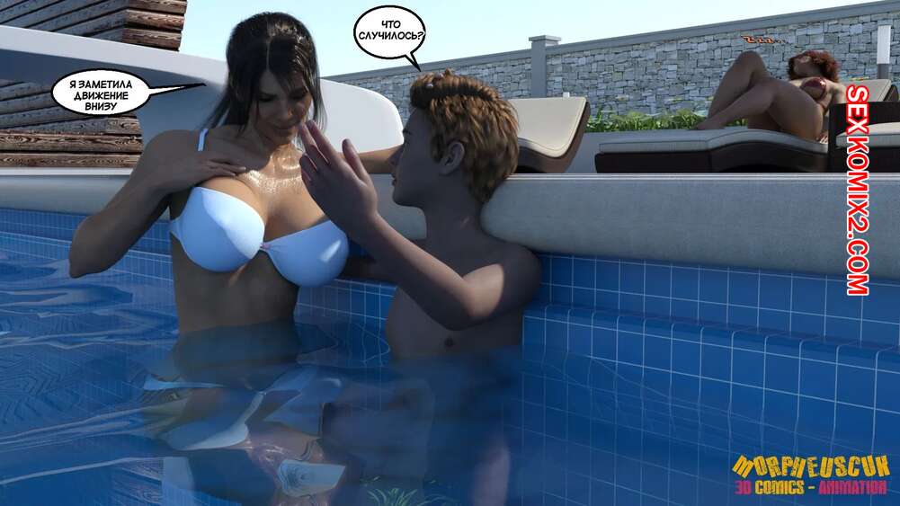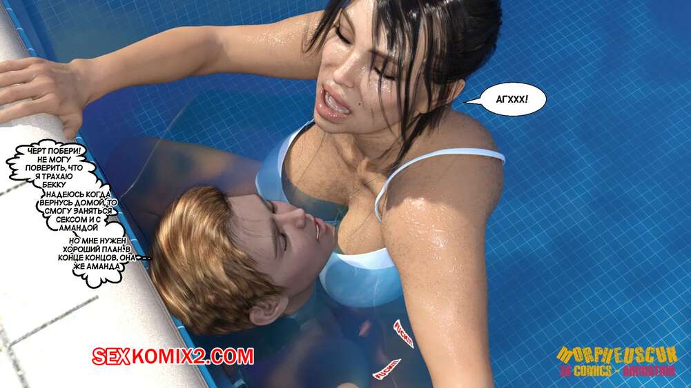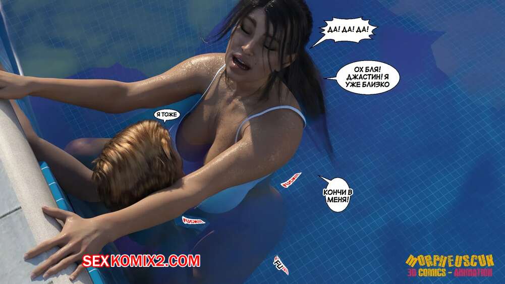 Порно комикс Соседство. Часть 2. Neighborhood. Morpheuscuk Горячая милфа решила повеселиться со своим племянником Джастином. Красотка возбудила его своим шикарным телом, после чего они пошли купаться в бассейне, где парень выебал пизденку тети.