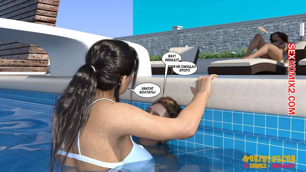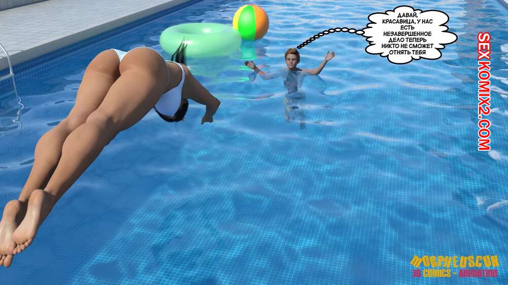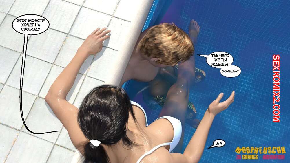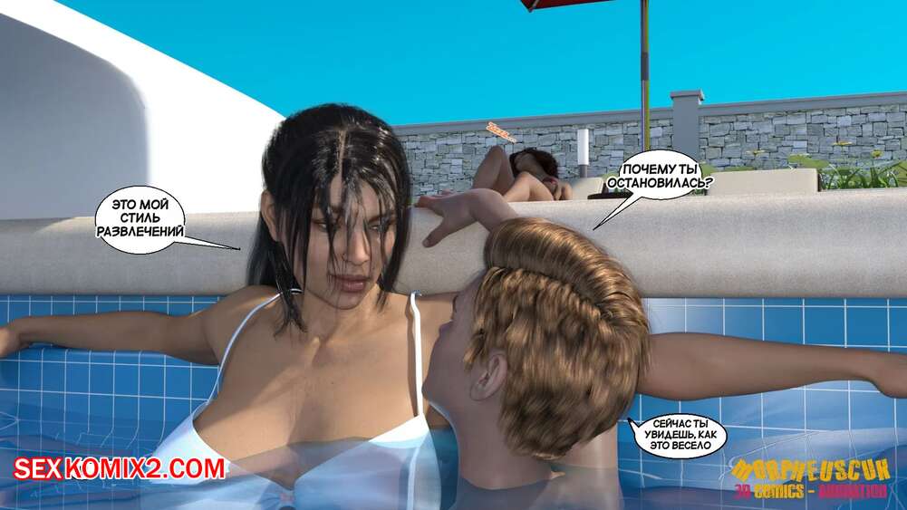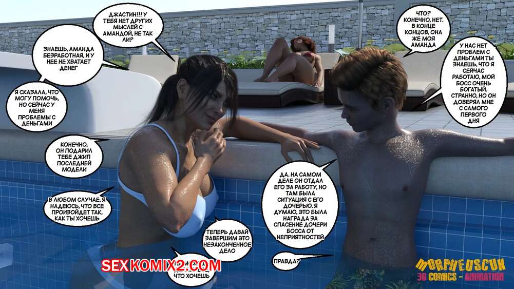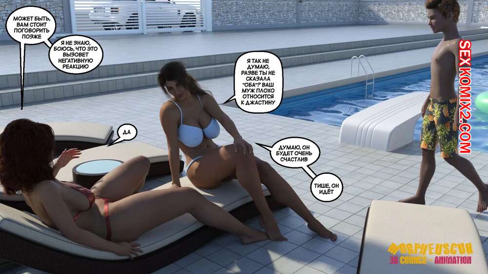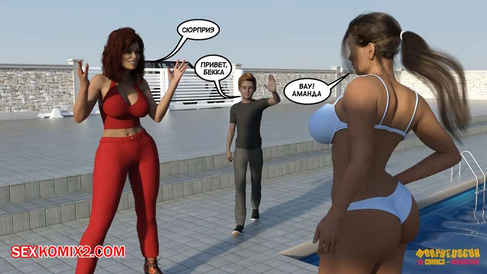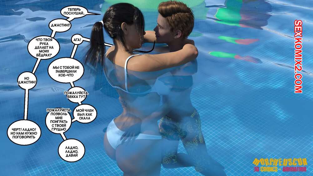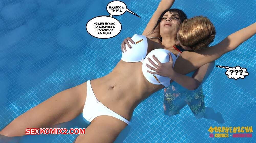 Порно комикс Соседство. Часть 2. Neighborhood. Morpheuscuk Горячая милфа решила повеселиться со своим племянником Джастином. Красотка возбудила его своим шикарным телом, после чего они пошли купаться в бассейне, где парень выебал пизденку тети.