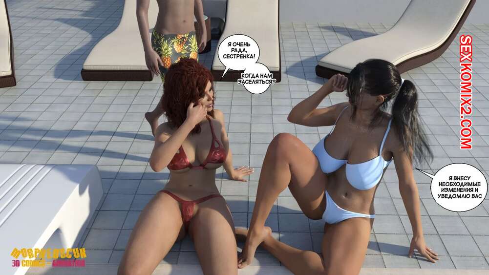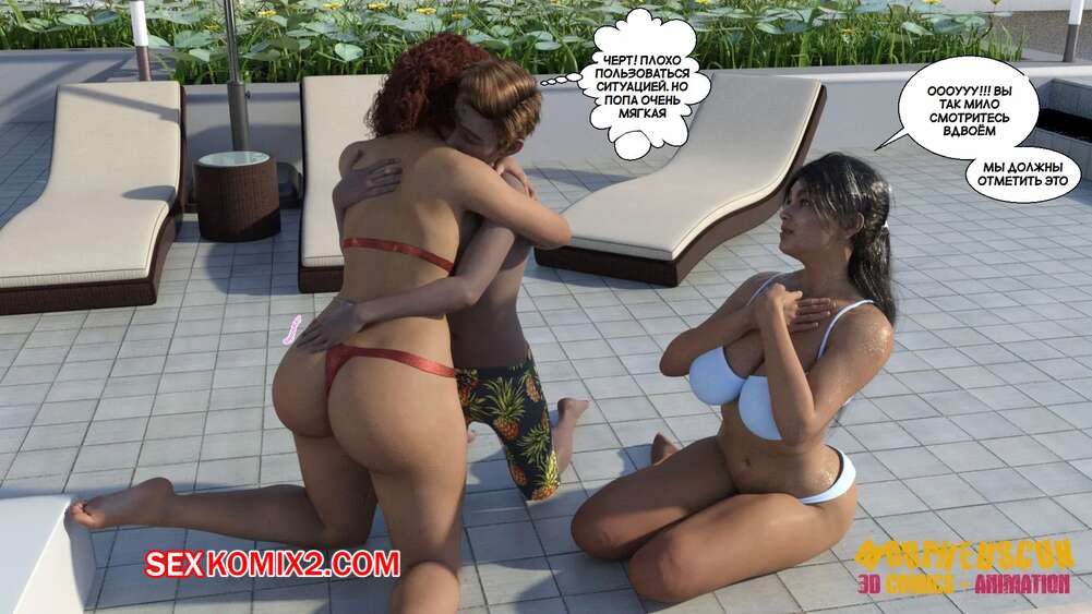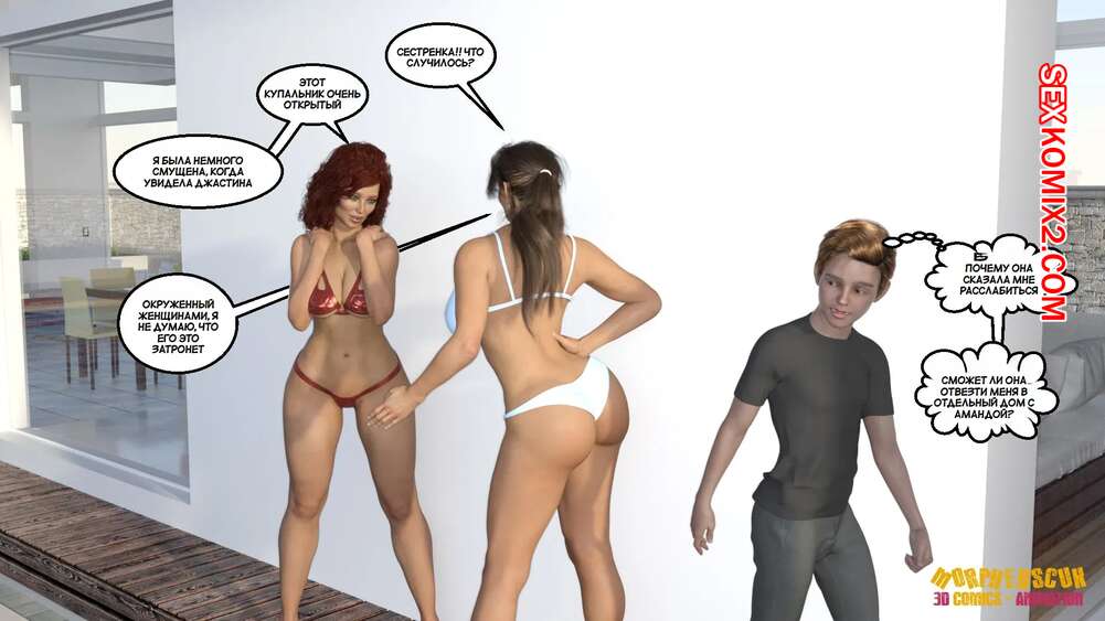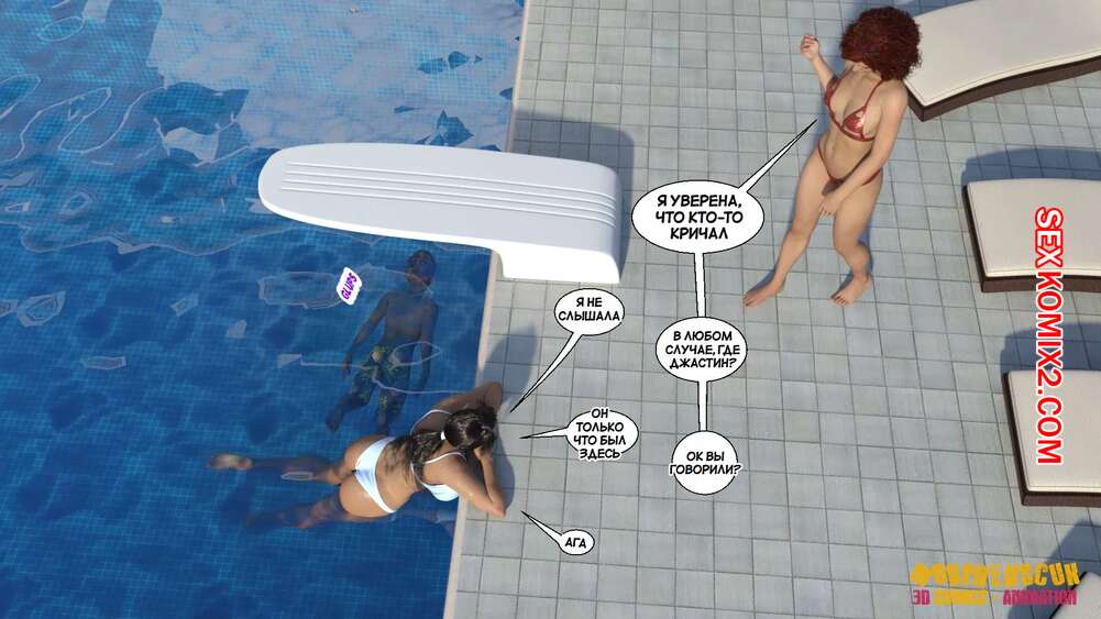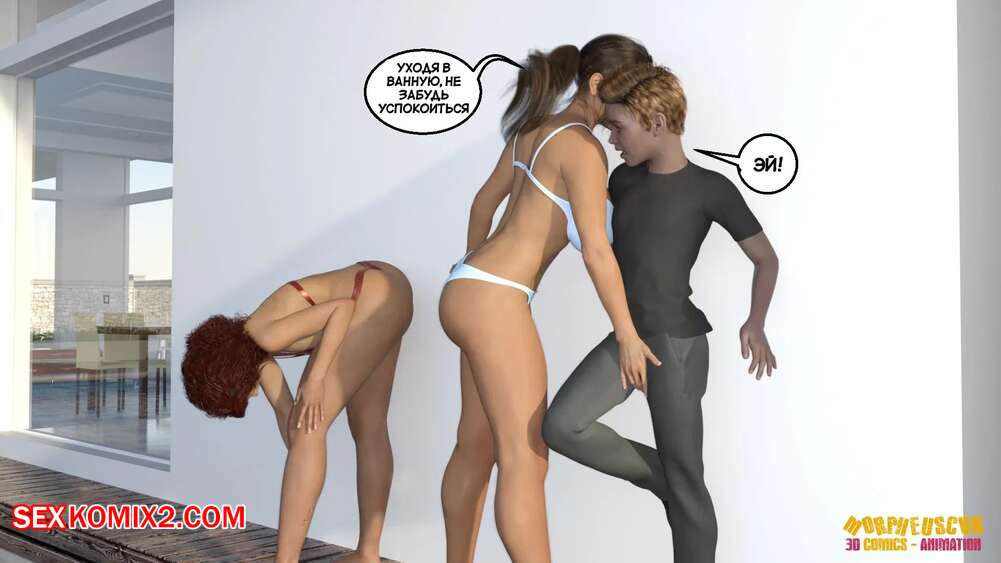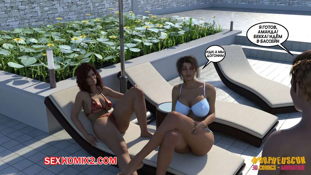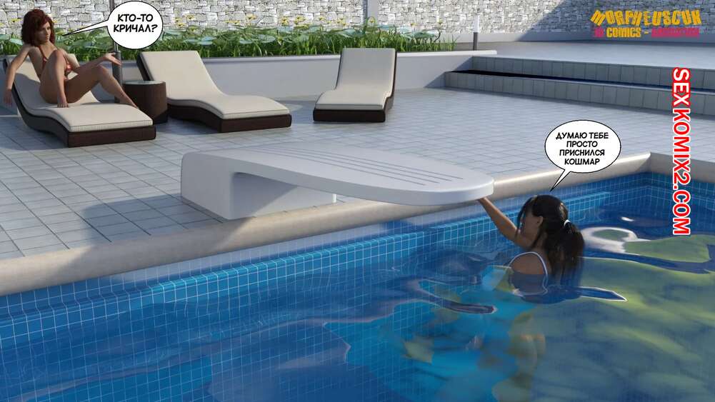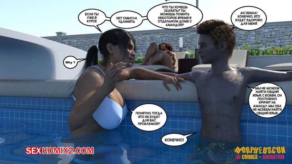 Порно комикс Соседство. Часть 2. Neighborhood. Morpheuscuk Горячая милфа решила повеселиться со своим племянником Джастином. Красотка возбудила его своим шикарным телом, после чего они пошли купаться в бассейне, где парень выебал пизденку тети.
