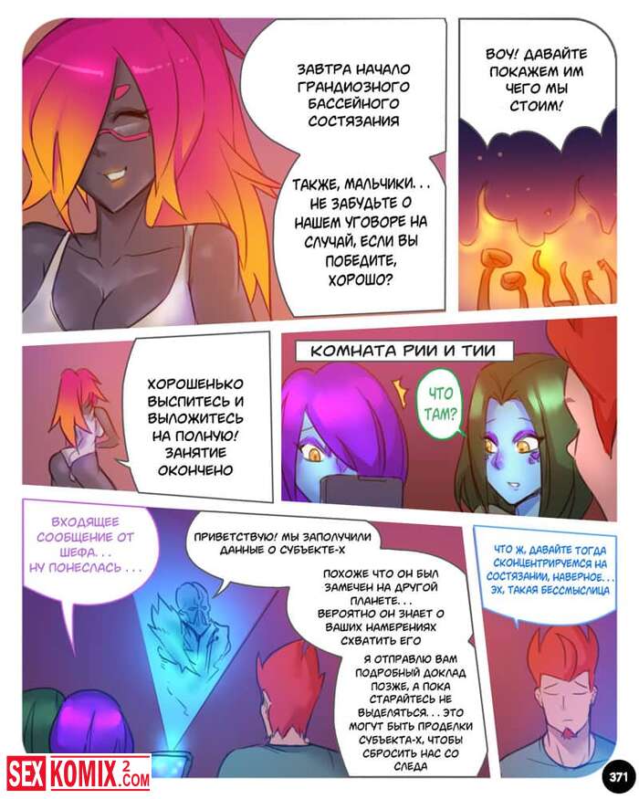 Порно комикс Секспедиция. Части 17 и 18. Sexpedition. Все команды готовились к чемпионату по космическому футболу. Но Джек со своей синей подружкой только и делали, что всю ночь трахались.