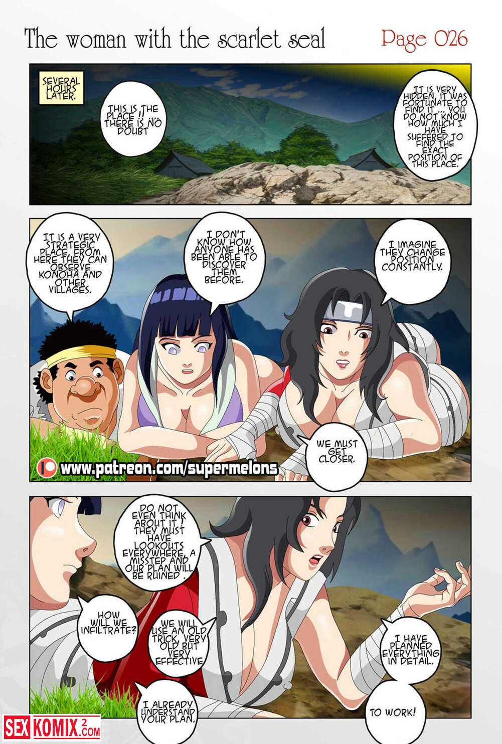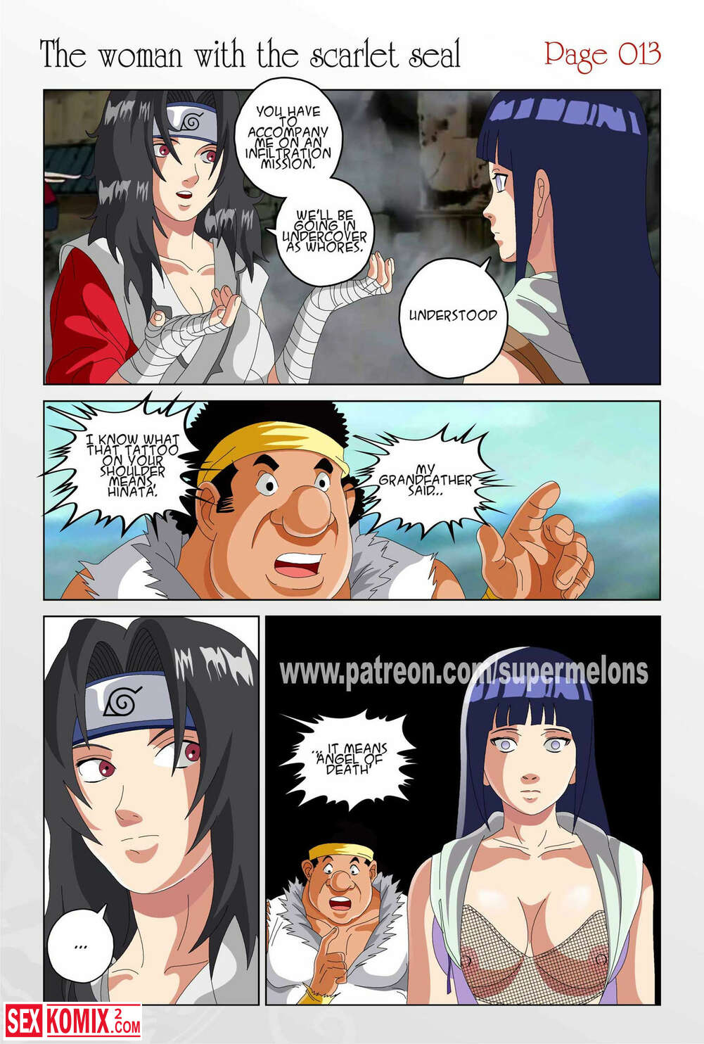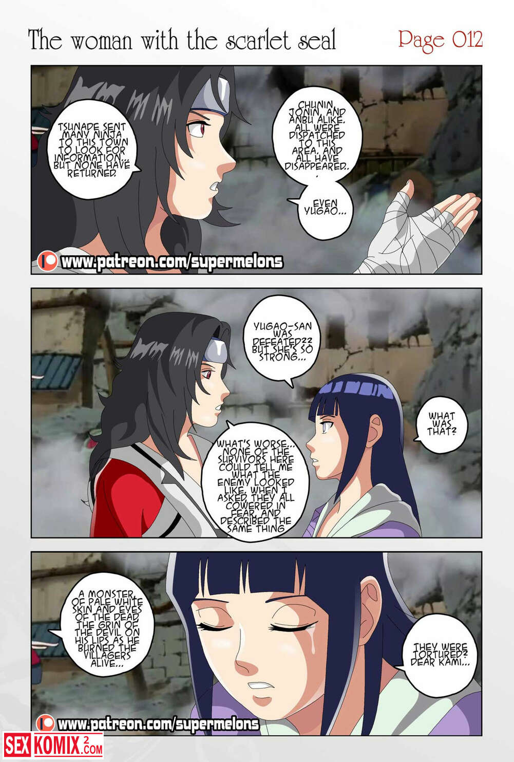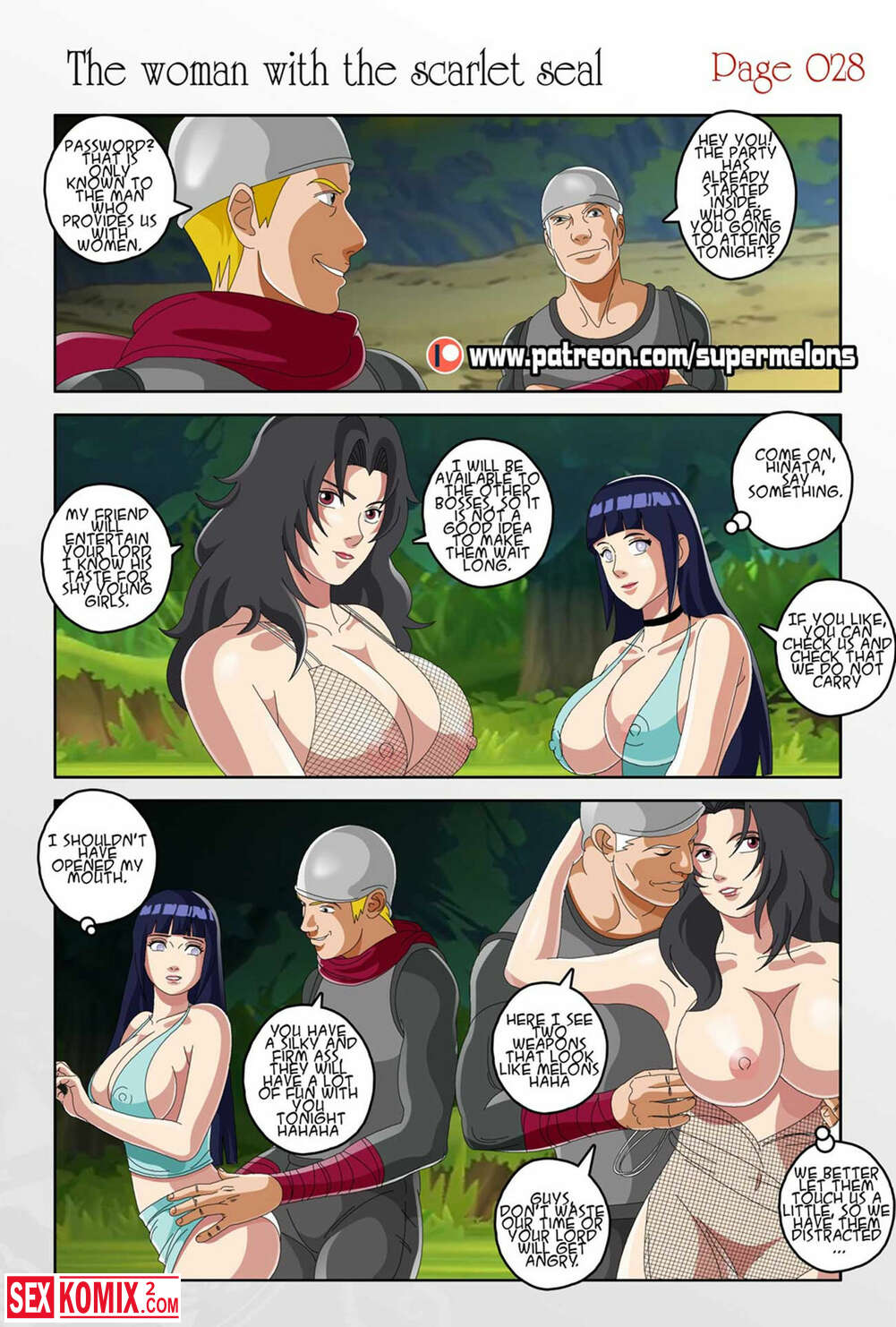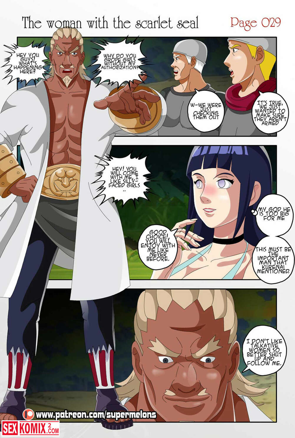 Порно комикс Женщина с алой печатью. Наруто. Английский. Хината очнулась в неизвестном её месте, после схватки она потеряла сознание и не помнила как оказалась тут. Начали появляться мужчины и пытались трахнуть брюнетку, с усилием её удалось отбиться и найти дорогу домой.