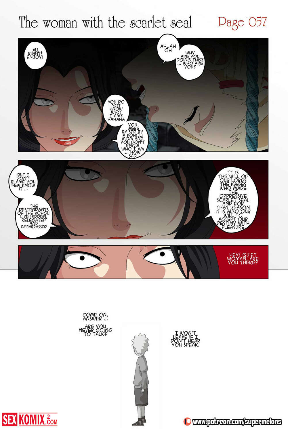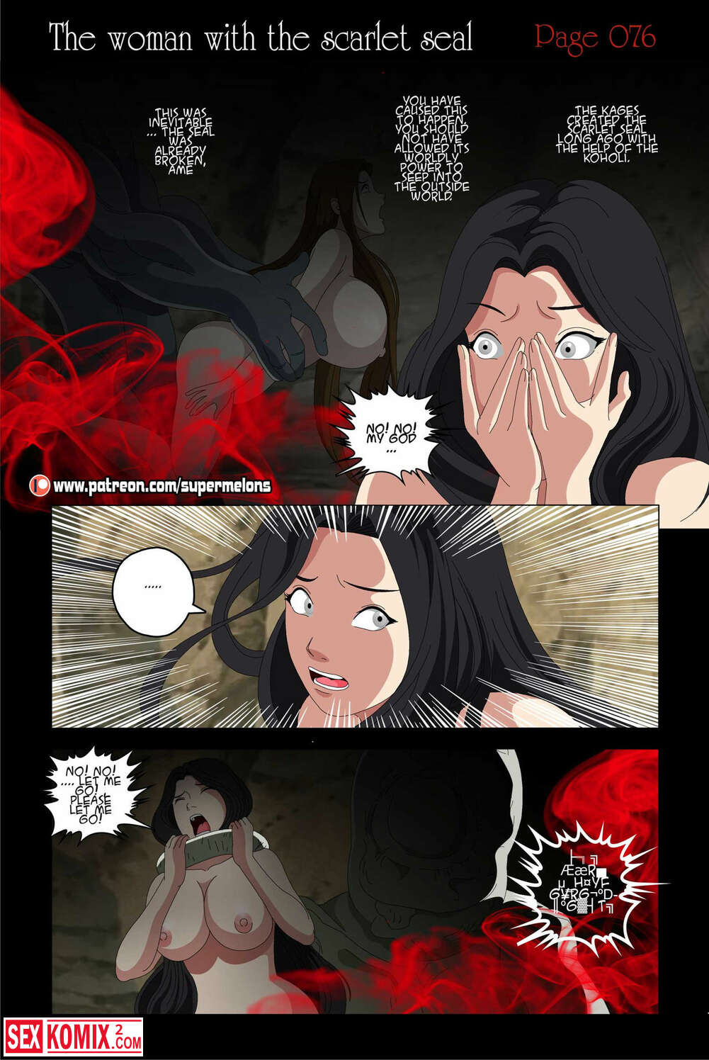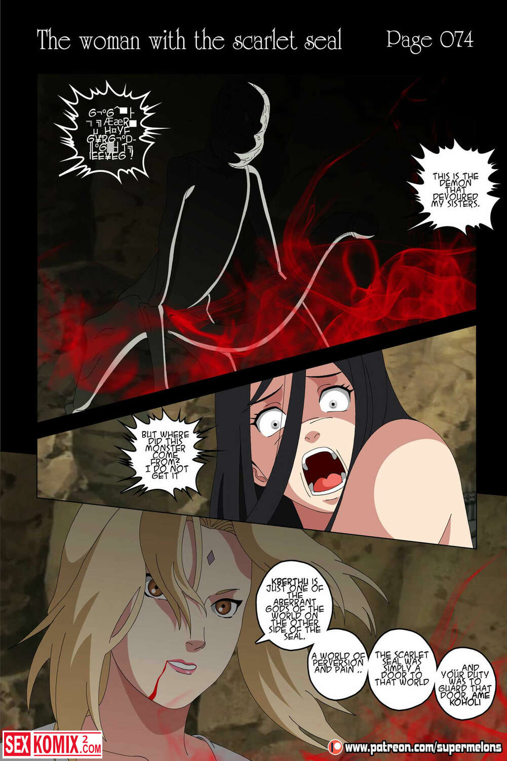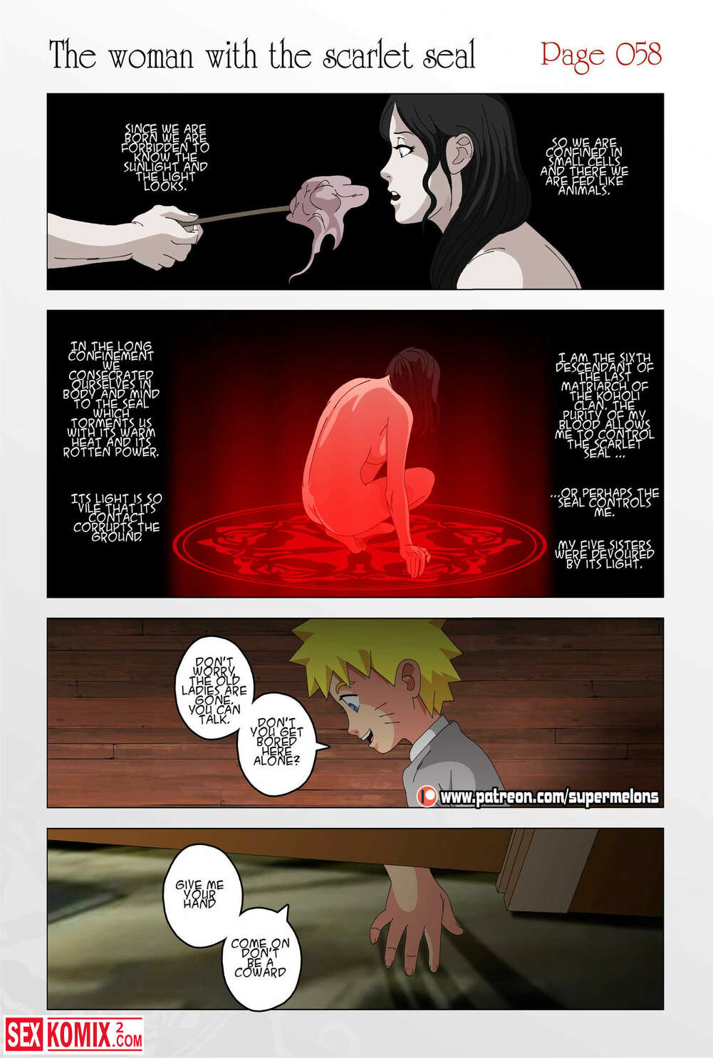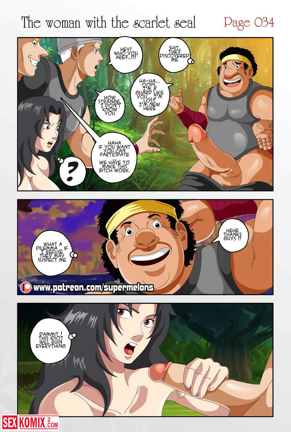 Порно комикс Женщина с алой печатью. Наруто. Английский. Хината очнулась в неизвестном её месте, после схватки она потеряла сознание и не помнила как оказалась тут. Начали появляться мужчины и пытались трахнуть брюнетку, с усилием её удалось отбиться и найти дорогу домой.