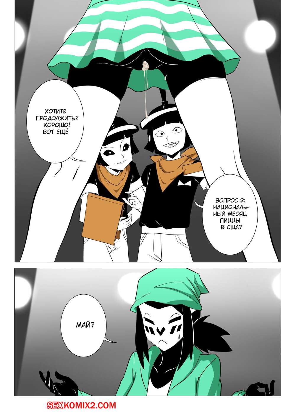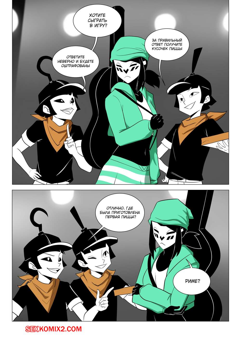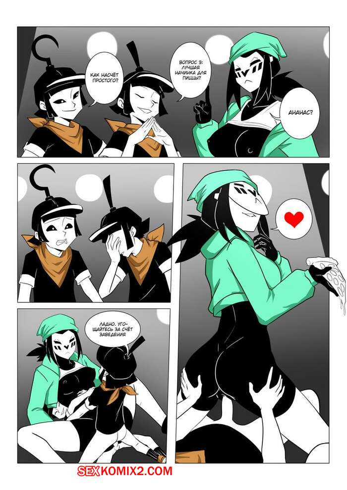 Порно комикс Правило 63 Mime and Dash. vyzov Два парня решили повеселиться с сексуальной брюнеткой. Они обманом соблазнили ее и дали ей отсосать свои большие хуи, после чего выебали ее во все дырочки.