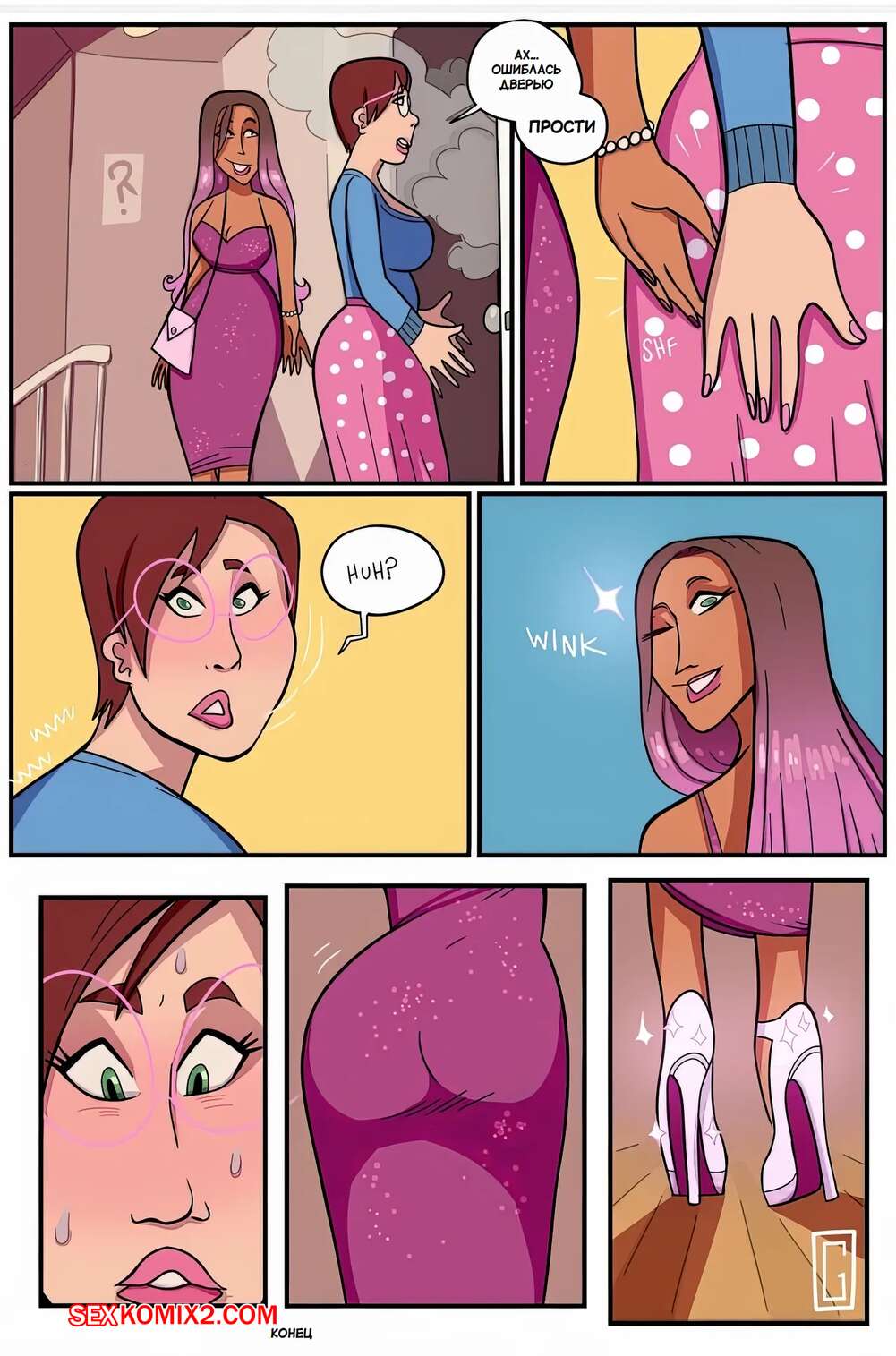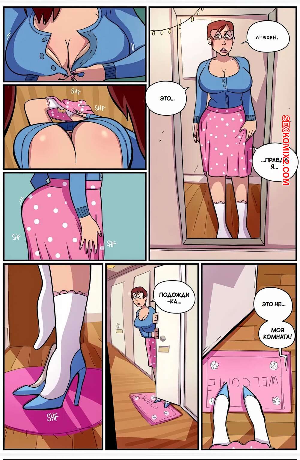 Порно комикс В ее туфлях. Часть 1. In Her Shoes. Grumpy TG. Молодой парень почувствовал сильное возбуждение и с ним стало твориться чтото невероятное. Спустя время, парень превратился в сексуальную девушку, которая была очень возбуждена и стала ласкать свою пизденку.