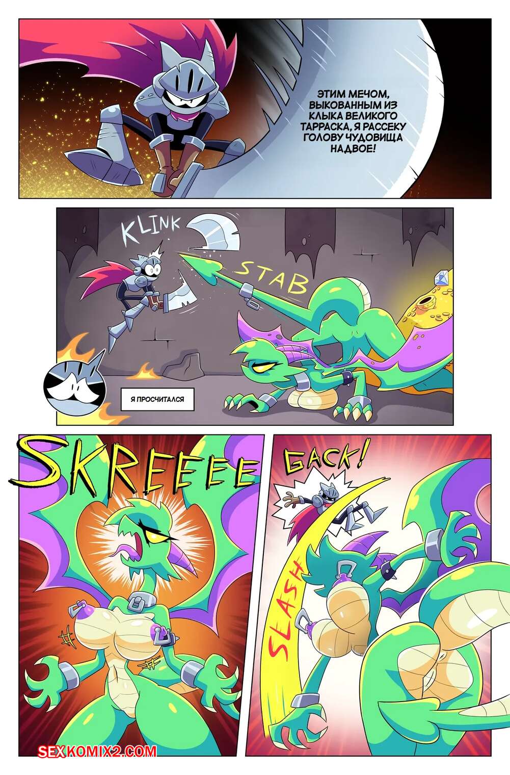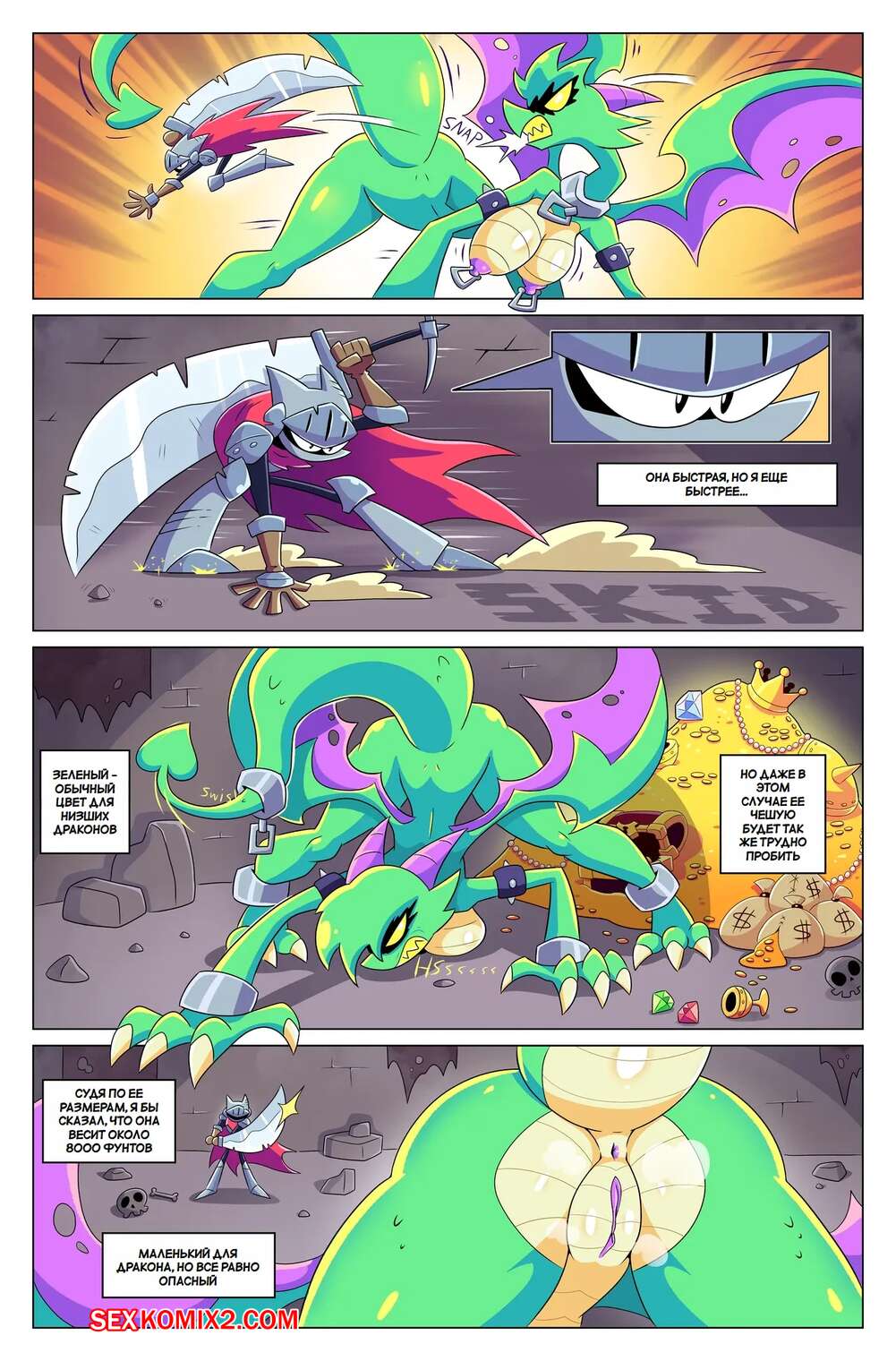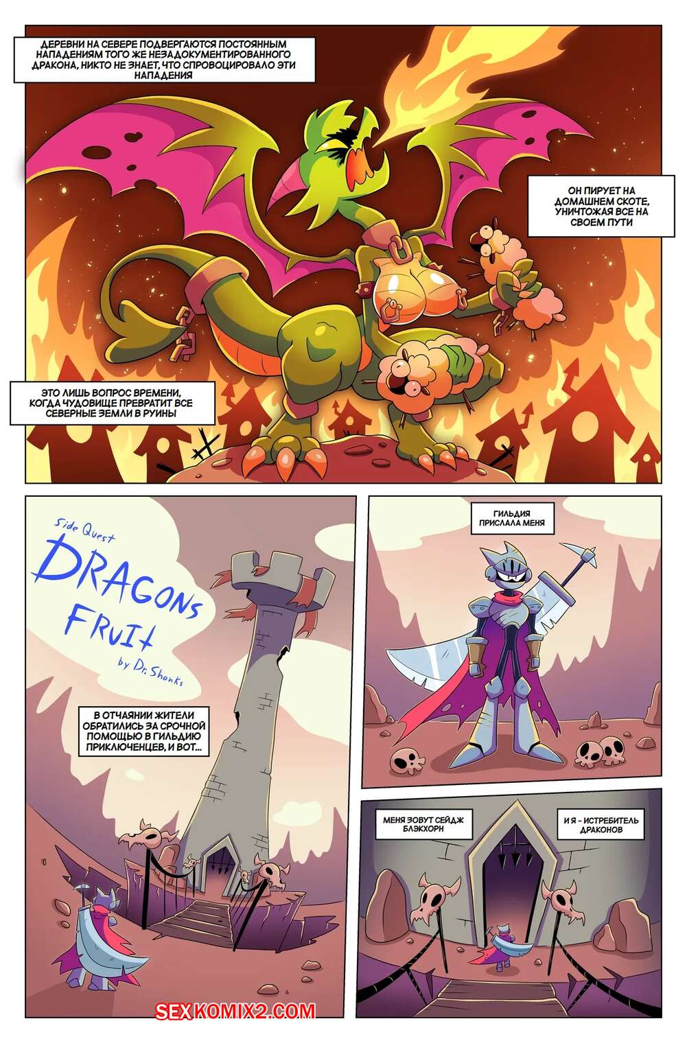 Порно комикс Драконий фрукт. Dragons Fruit. BoobyQuest Девушка дракон возбудилась, увидев огромный член рыцаря, и решила воспользоваться моментом. Она стала ласкать язычком хуй парня, желая ощутить его в своей пизденке.