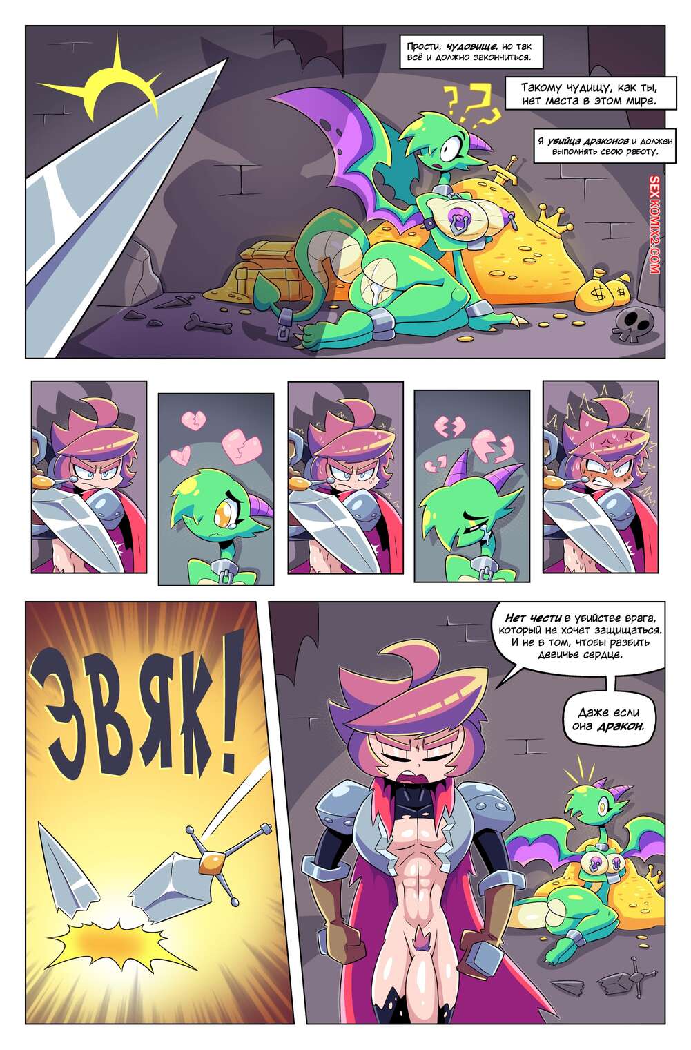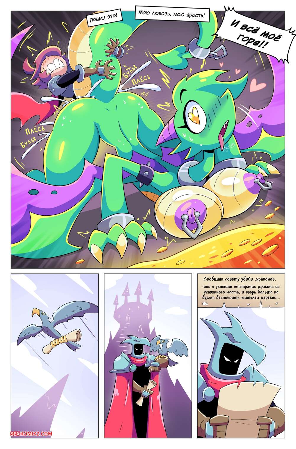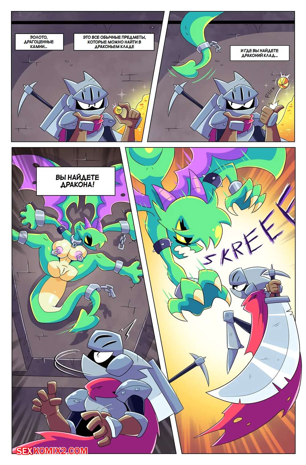 Порно комикс Драконий фрукт. Dragons Fruit. BoobyQuest Девушка дракон возбудилась, увидев огромный член рыцаря, и решила воспользоваться моментом. Она стала ласкать язычком хуй парня, желая ощутить его в своей пизденке.