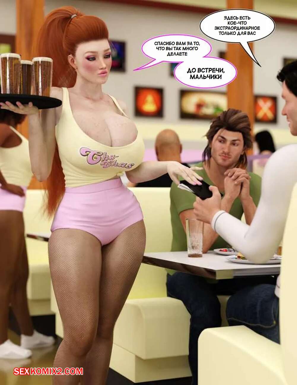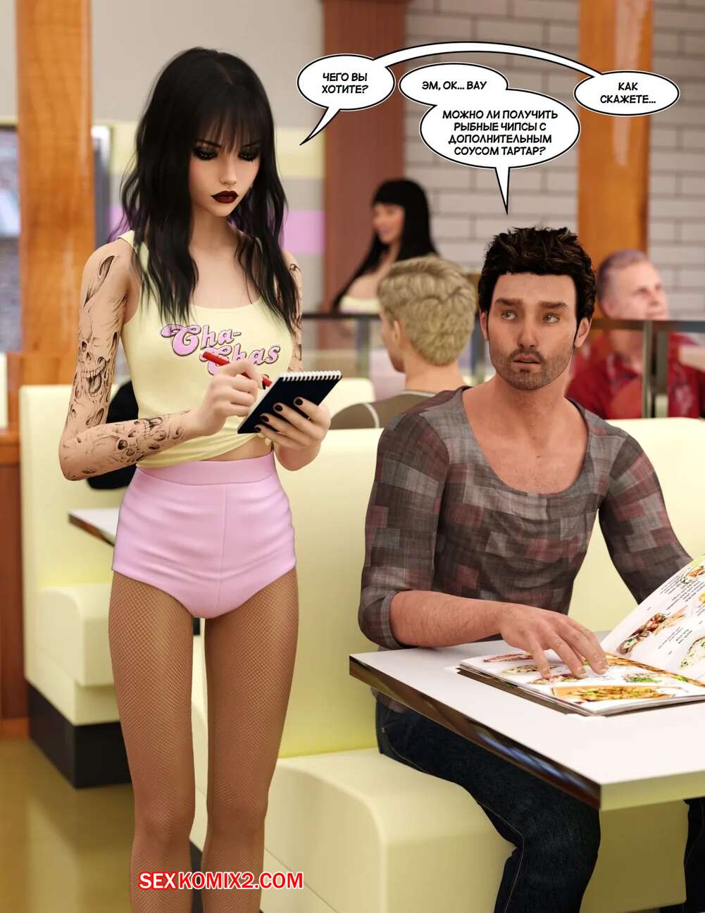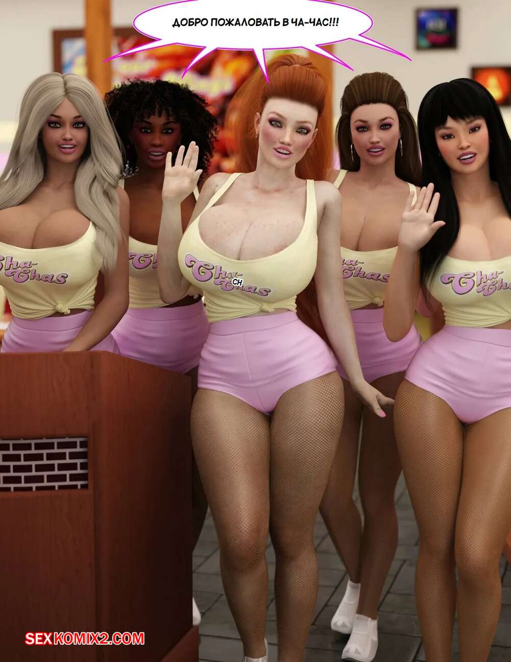 Порно комикс Добро пожаловать в Ча Час. Welcome To Cha Chas. Dynamoob Горячие красотки работают в столовой, которая пользуется большим спросом. Все дело в том, что красотки носят сексуалные наряды и соблазняют своих клиентов, от чего им хочется возвращаться почаще.