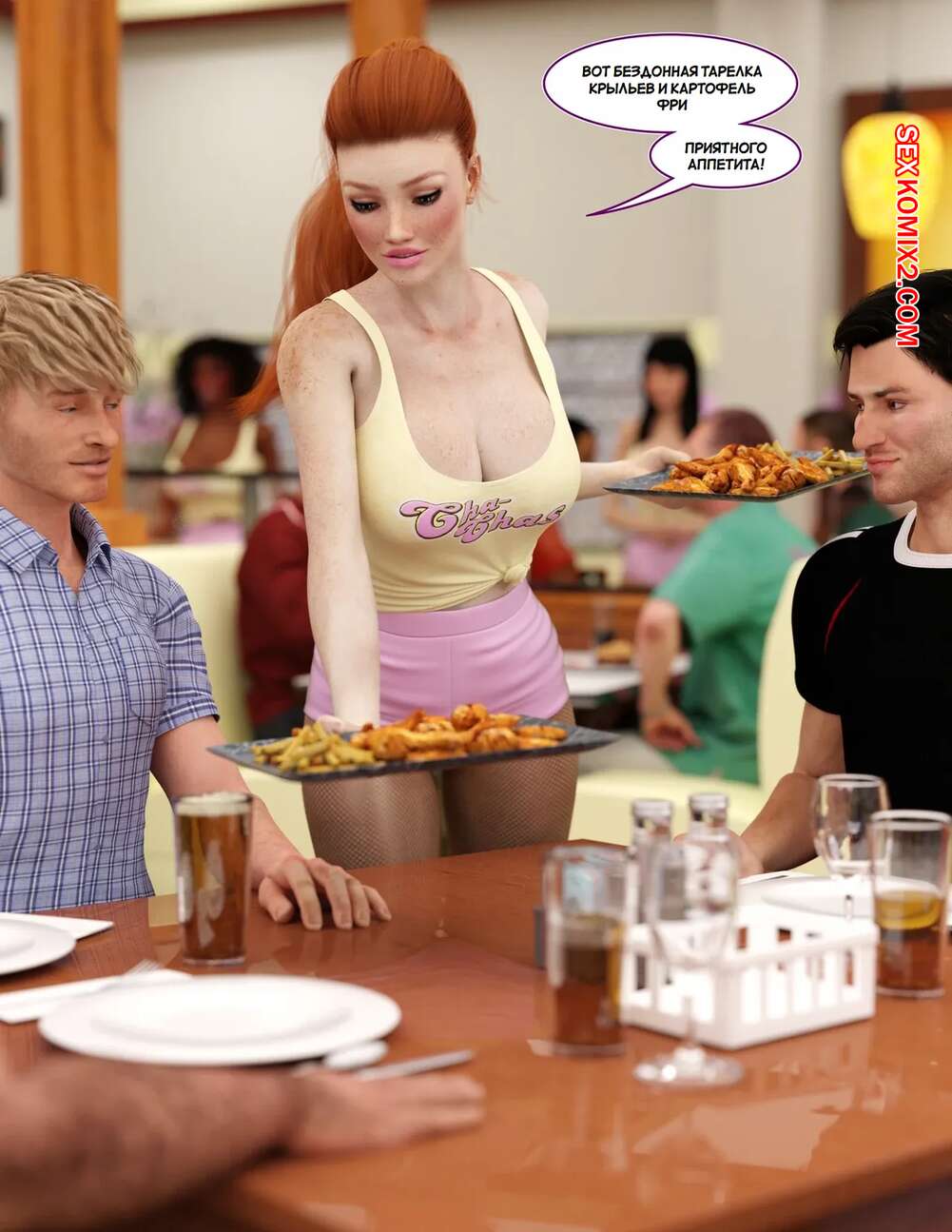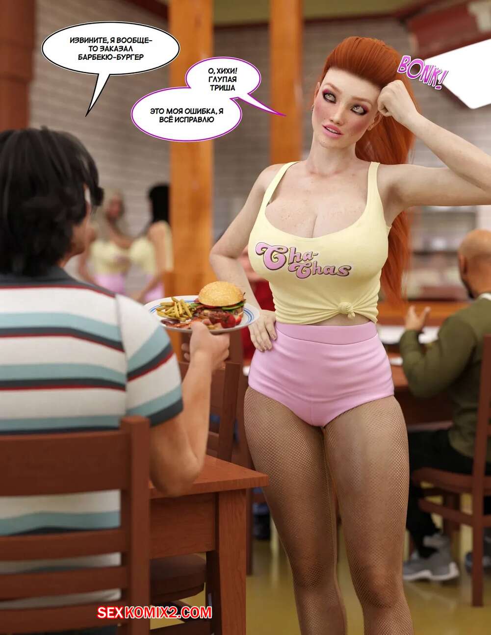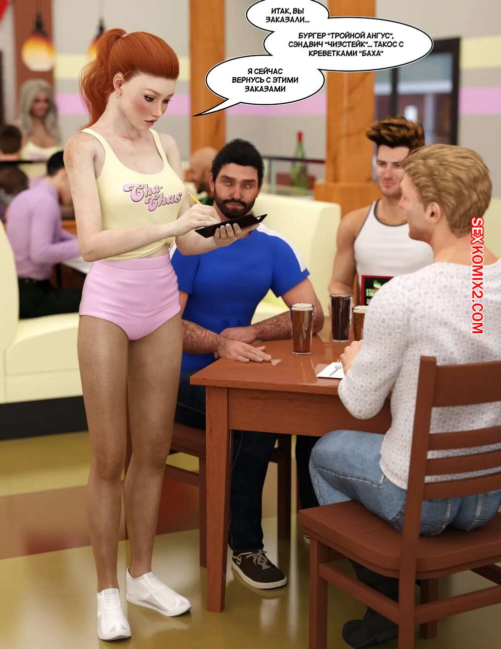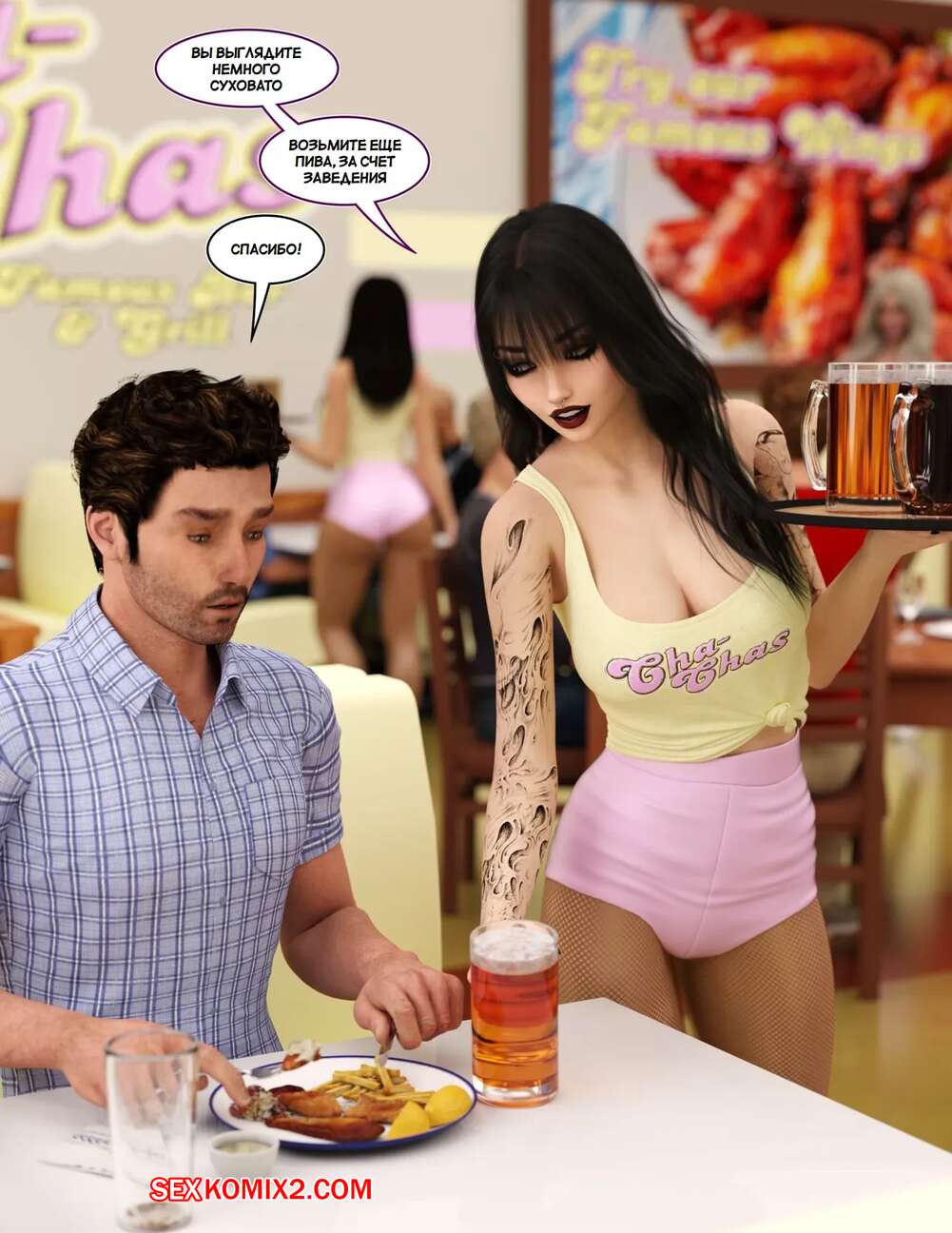 Порно комикс Добро пожаловать в Ча Час. Welcome To Cha Chas. Dynamoob Горячие красотки работают в столовой, которая пользуется большим спросом. Все дело в том, что красотки носят сексуалные наряды и соблазняют своих клиентов, от чего им хочется возвращаться почаще.