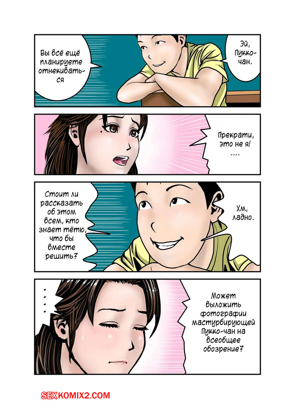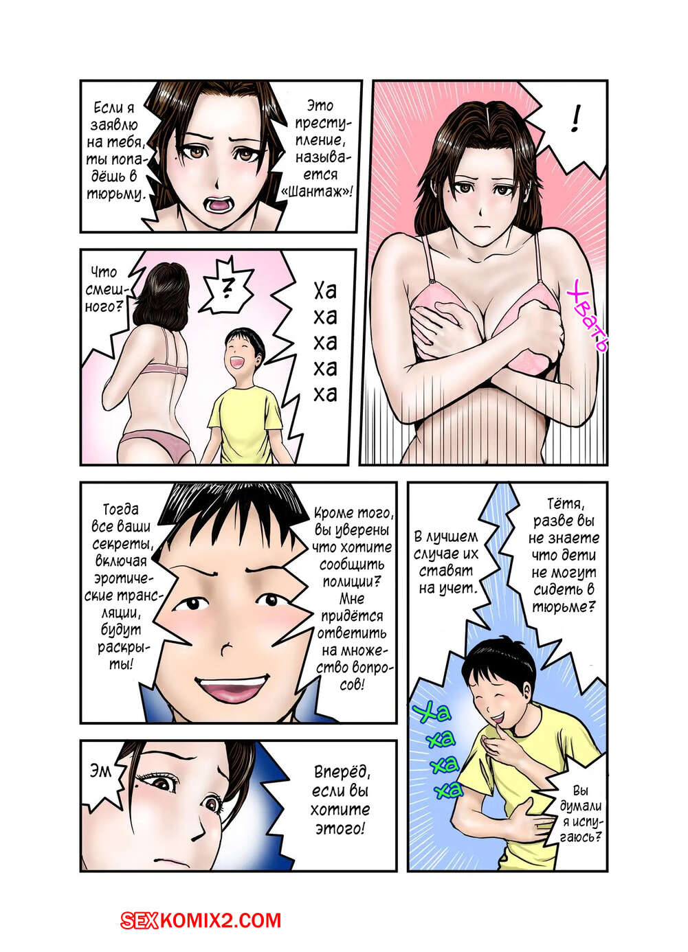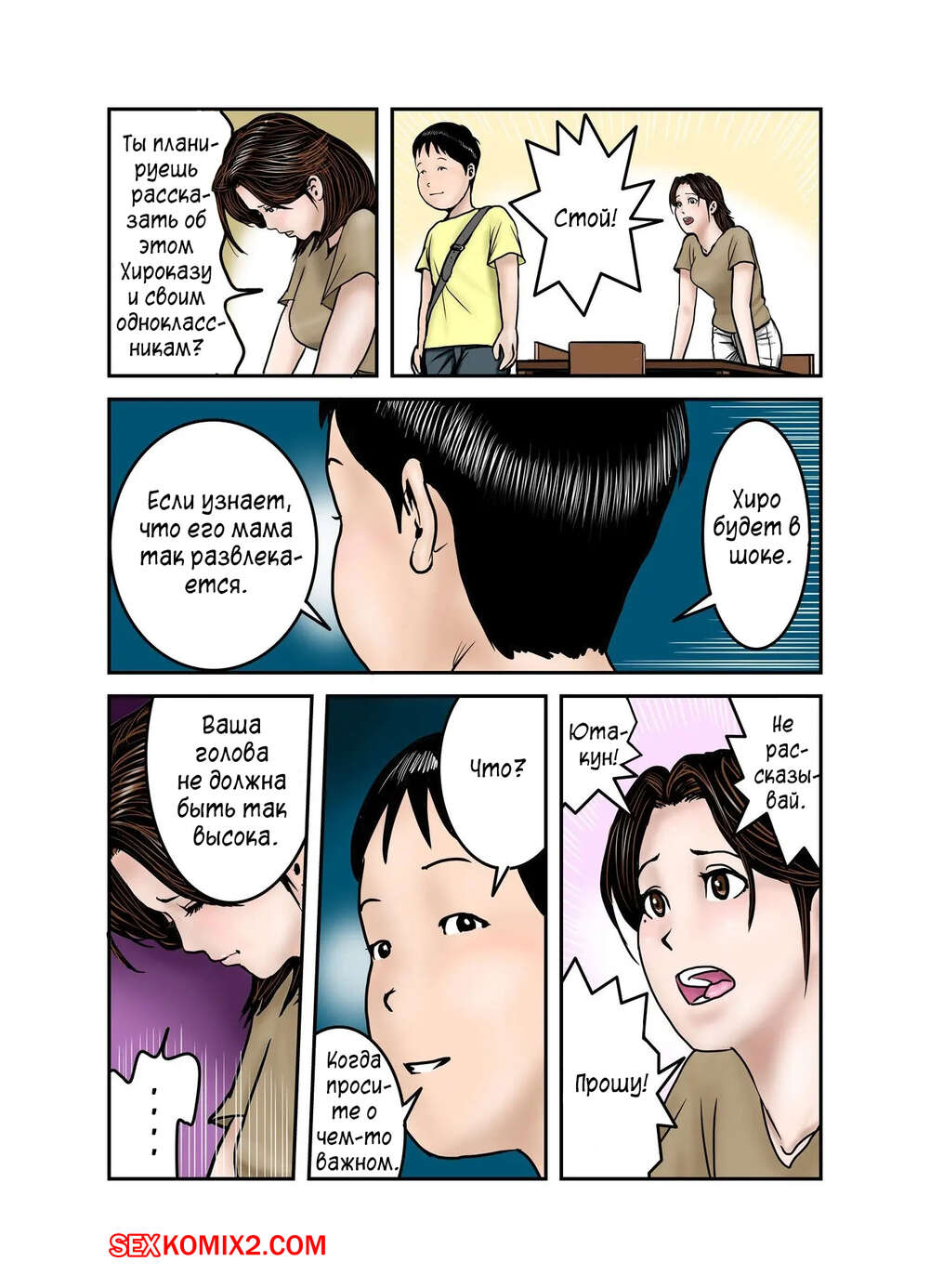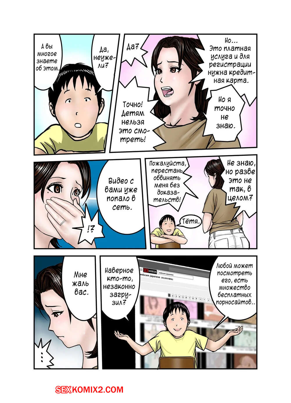 Порно комикс Мама Хиро куна моя секс рабыня. Часть 1. Exit Up Юный парень узнал, что мама его друга является вебкамщицей и стал ее этим шантажировать. Милфе пришлось встать на колени и отсосать большой хуй парня, после чего он ее выебал.