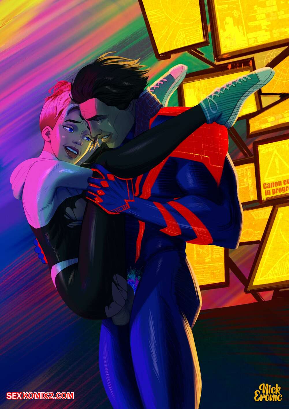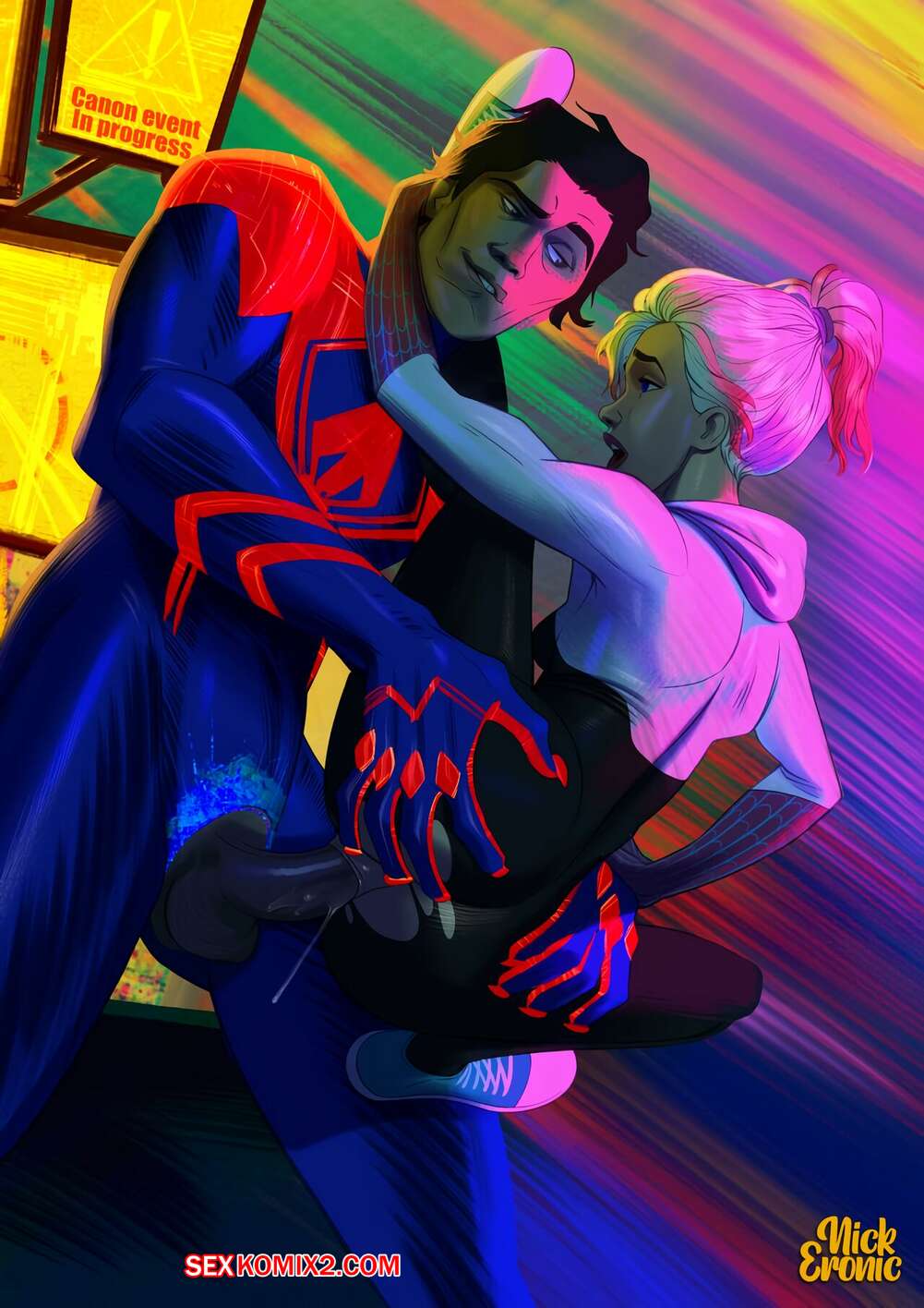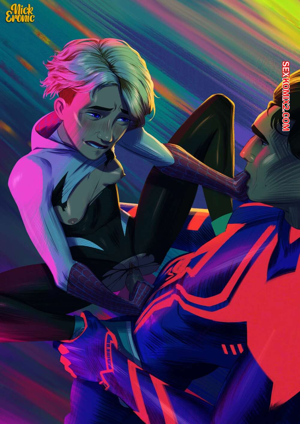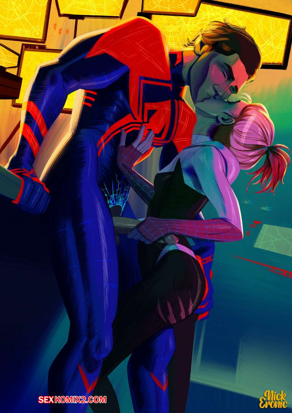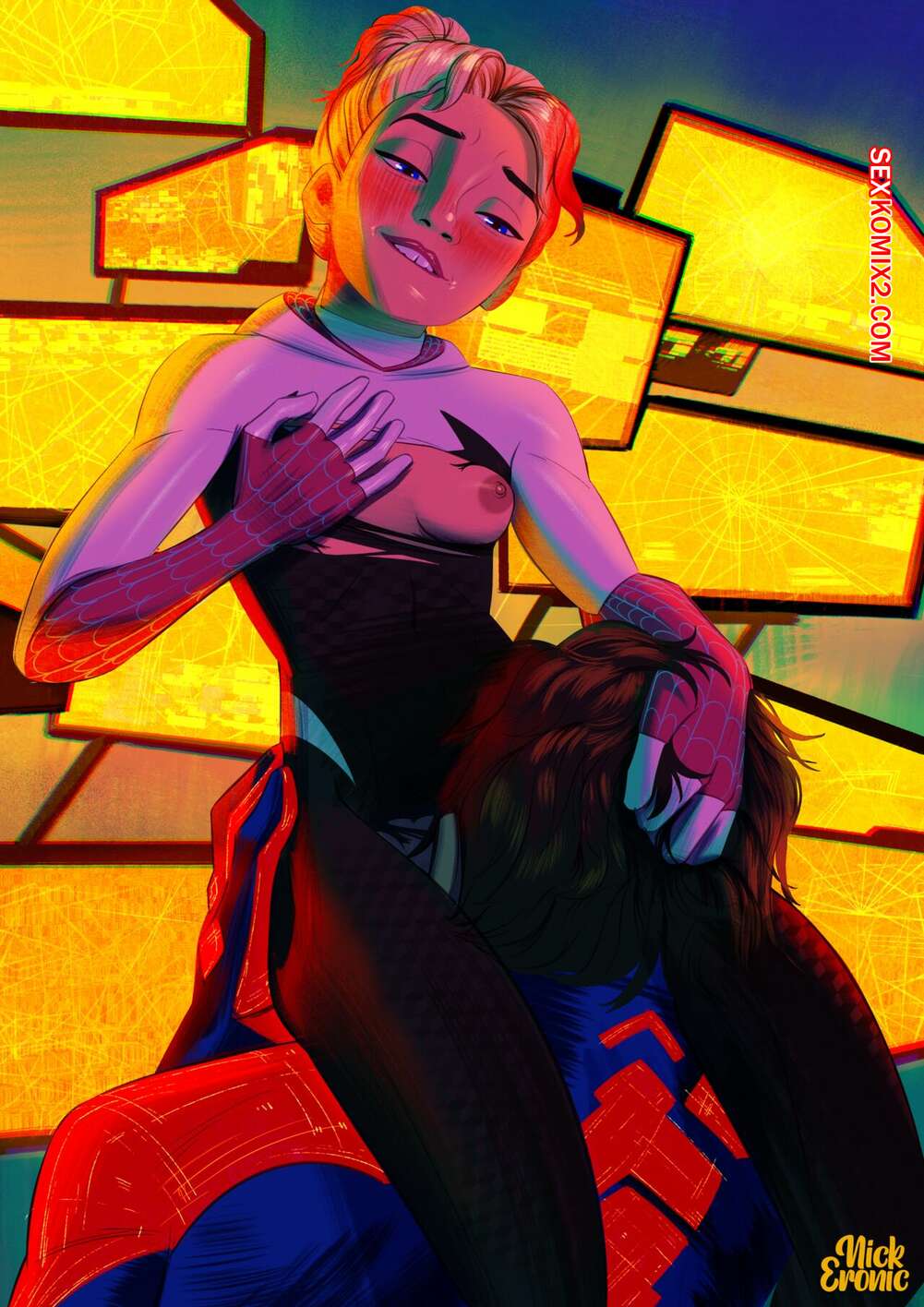 Порно комикс Migwen. NickEronic. Гвен была очень возбуждена и решила повеселиться с Мигелем. Девушка разделась и отсосала большой хуй своего дружка, после чего дала ему выебать свою пизденку.