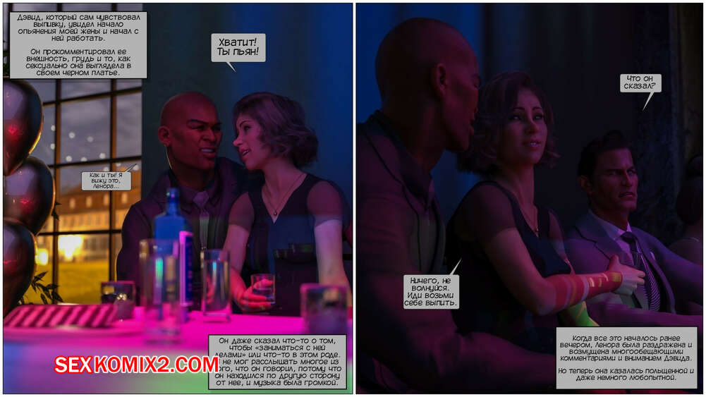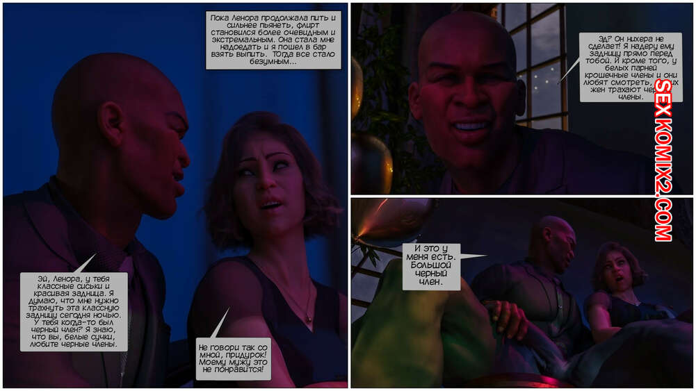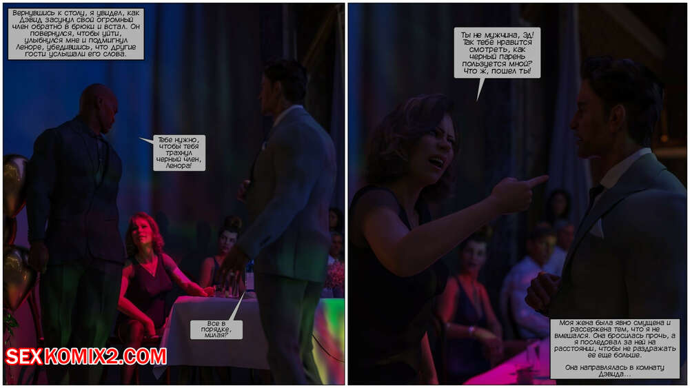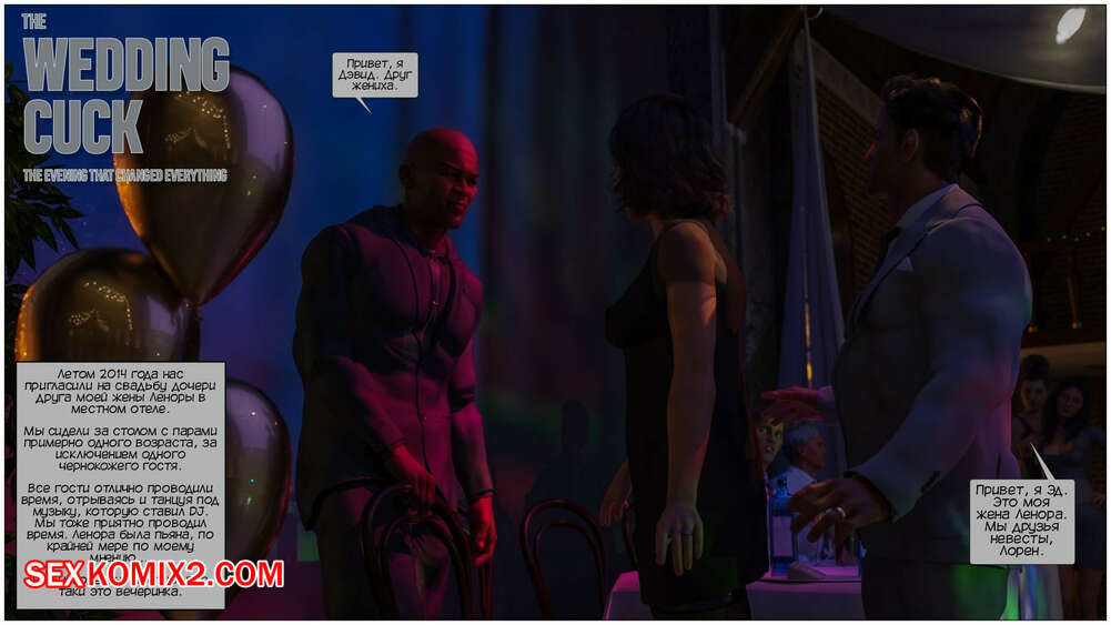 Порно комикс Свадебный куколд. The Wedding Cuck. Tab109 Эд и его жена Ленора отправились на свадьбу к друзьям, где к милфе стал проявлять внимание темнокожий парень. Они отправились к нему в комнату, где Дэвид выебал чужую жену во все дырочки.
