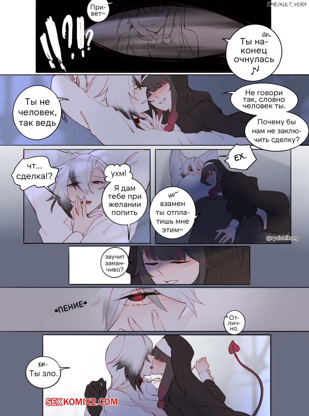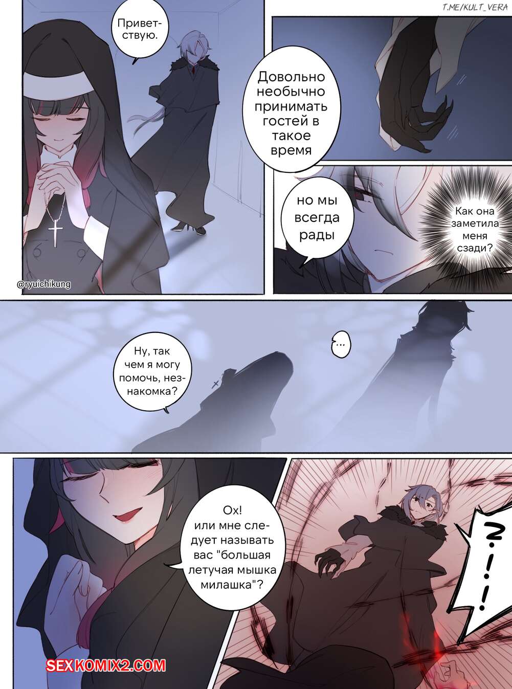 Порно комикс Genshin Impact. Вампир встречается с суккубом. Ryuichikung Горячая брюнетка монашка встретила суккуба девушку с большим хуем и решила с ней повеселиться. Красотка раздвинула ножки и дала демону себя выебать, получив огромное удовольствие.
