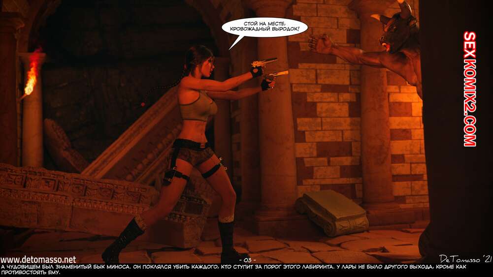 Порно комикс Tomb Raider. Добыча. The Prey. Detomasso Во время своей миссии горячая красотка Лара Крофт была схвачена минотавром. Он раздел девушку и выебал ее задница своим огромным хуем, доставив ей огромное удовольствие.