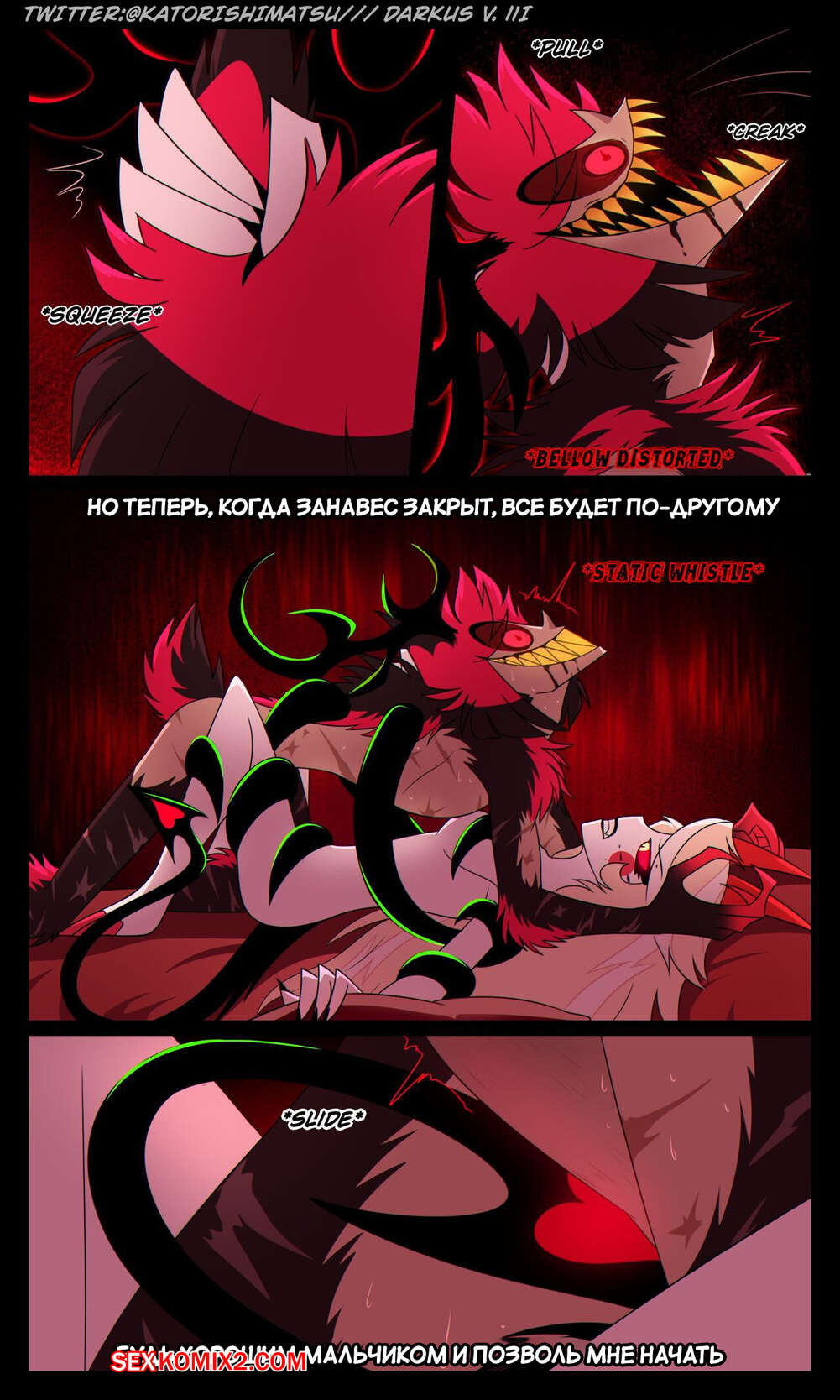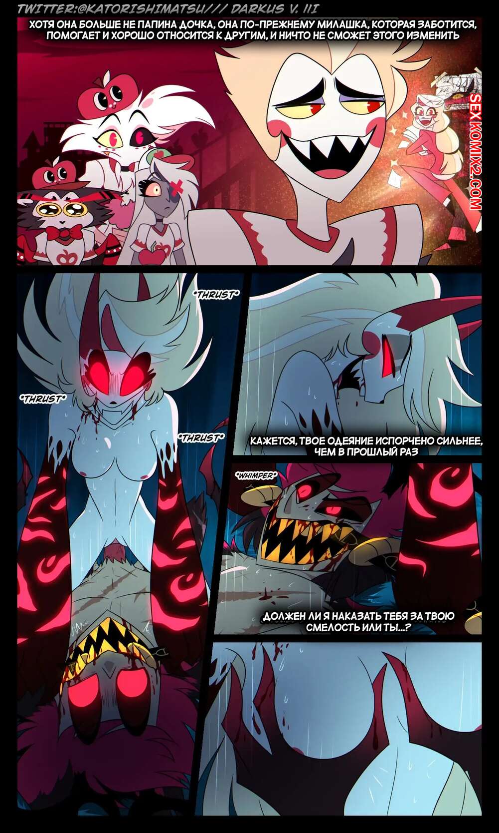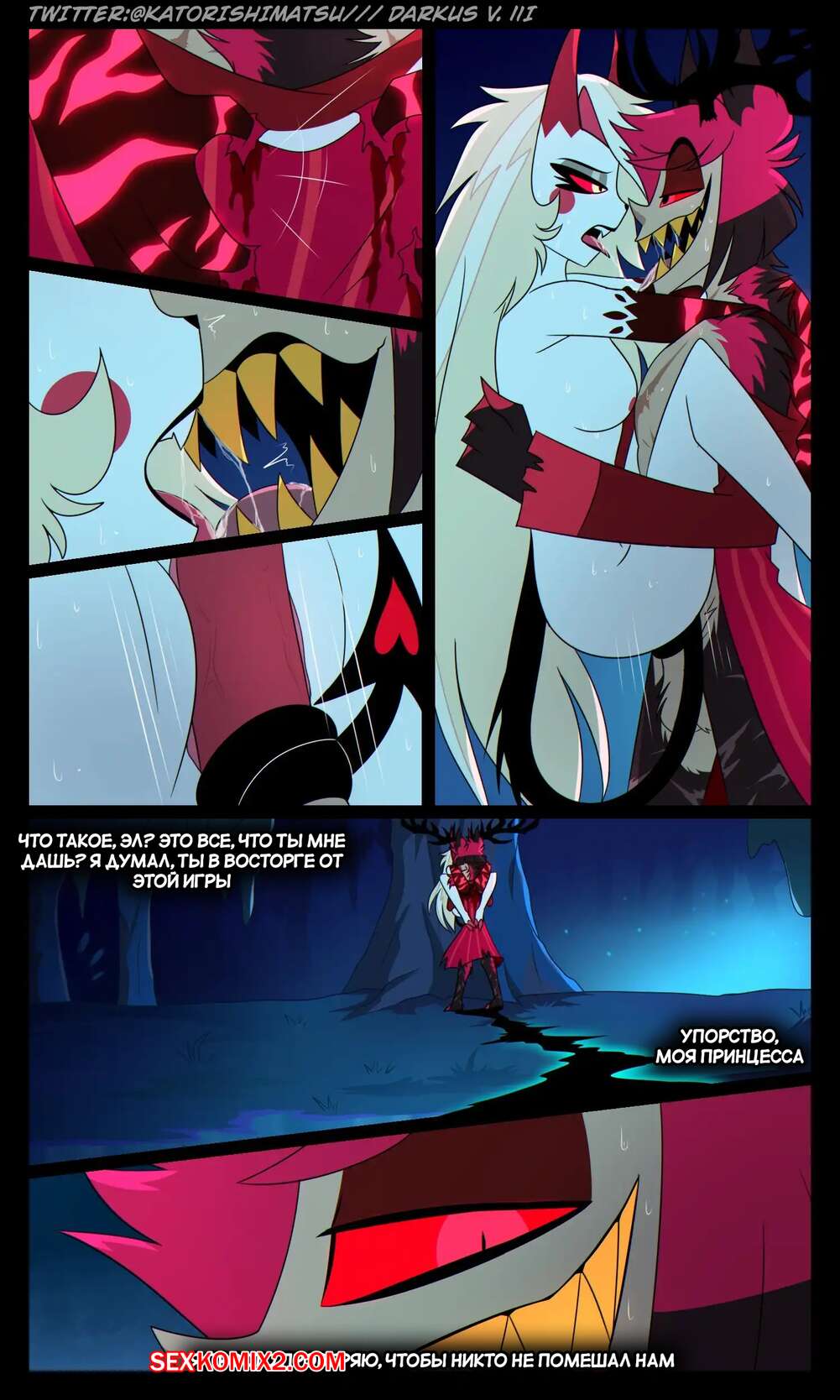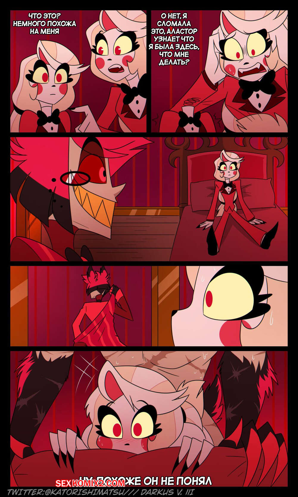 Порно комикс Отель Хазбин. Халастор. Chalastor Comic. katorishimatsu. Демон был очень возбужден ночью и решил повеселиться с сексуальной блондинкой. Он затащил ее в постель и хорошенько выебал пизденку девушки, испытав огромное удовольствие.
