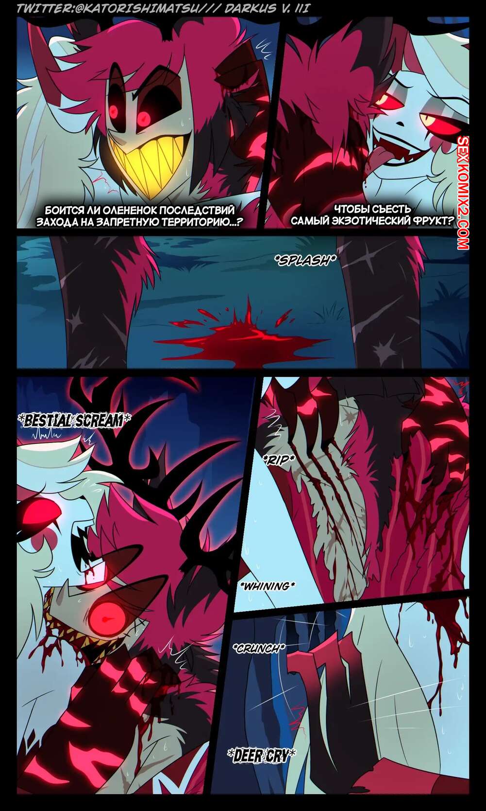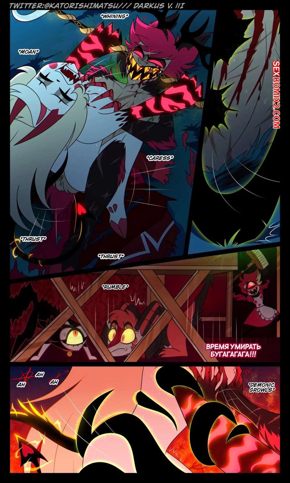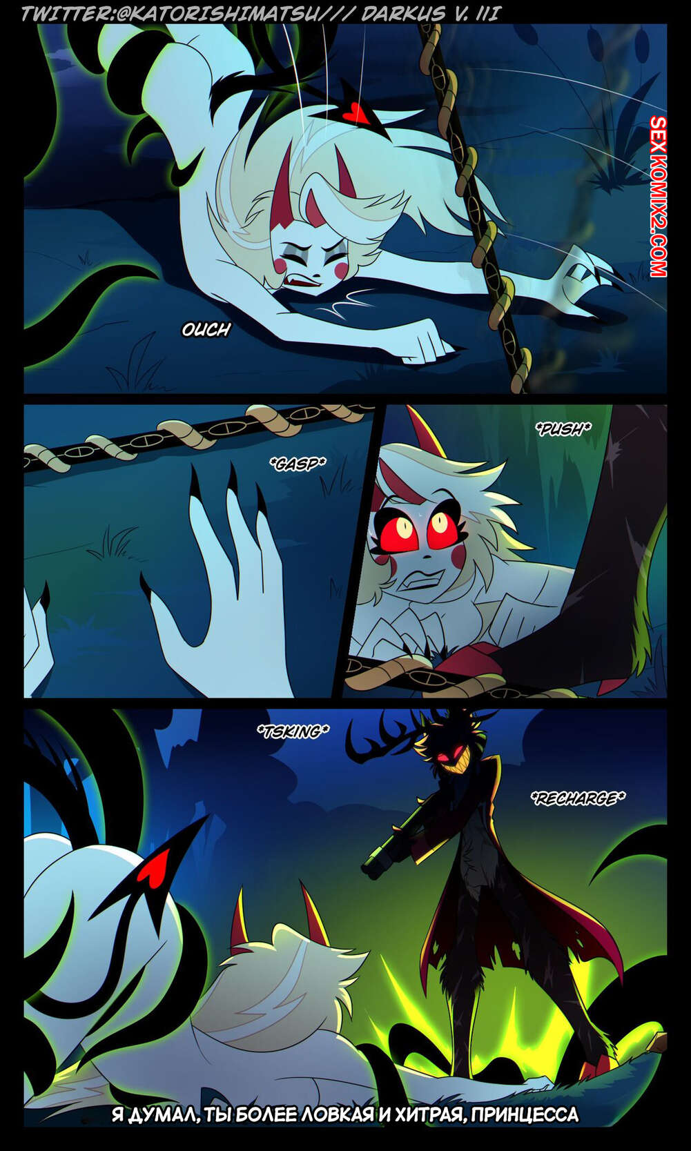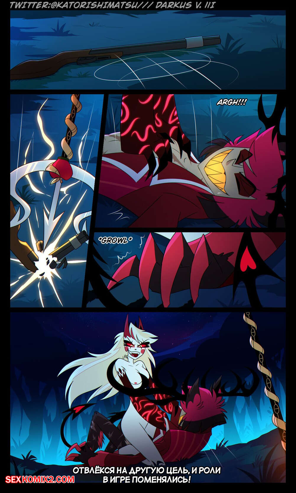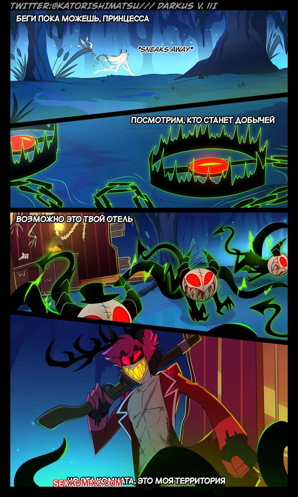 Порно комикс Отель Хазбин. Халастор. Chalastor Comic. katorishimatsu. Демон был очень возбужден ночью и решил повеселиться с сексуальной блондинкой. Он затащил ее в постель и хорошенько выебал пизденку девушки, испытав огромное удовольствие.