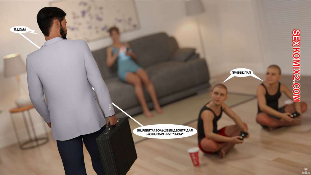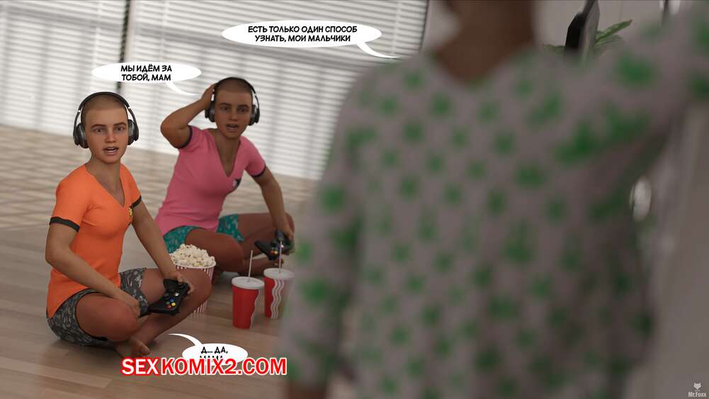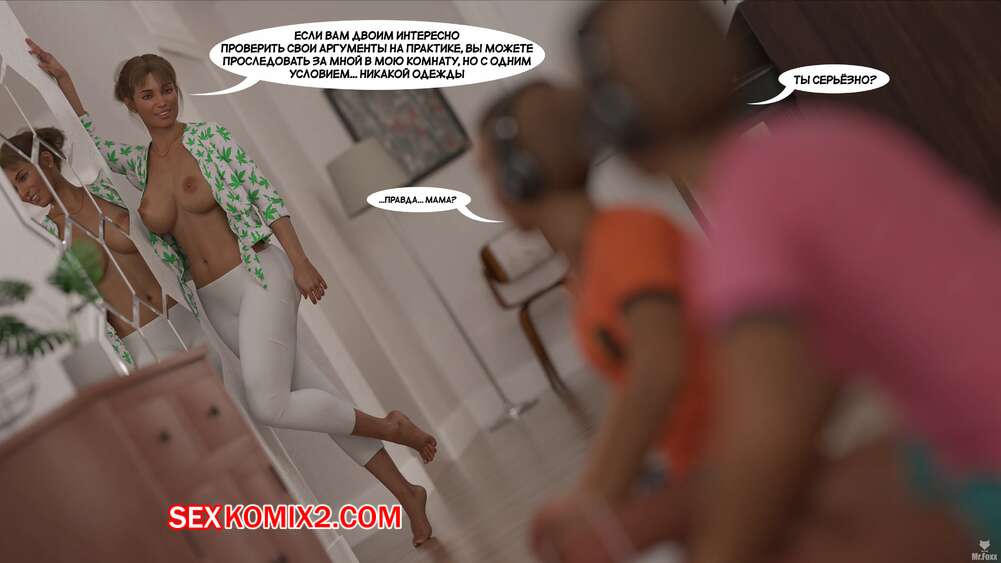 Порно комикс Красота реальности. The Beauty of Reality. Mr.Foxx Горячая брюнетка милфа осталась дома наедине со своими сыновьями и решила повеселиться. Она пригласила их в свою комнату, где встретила их полностью голыми.