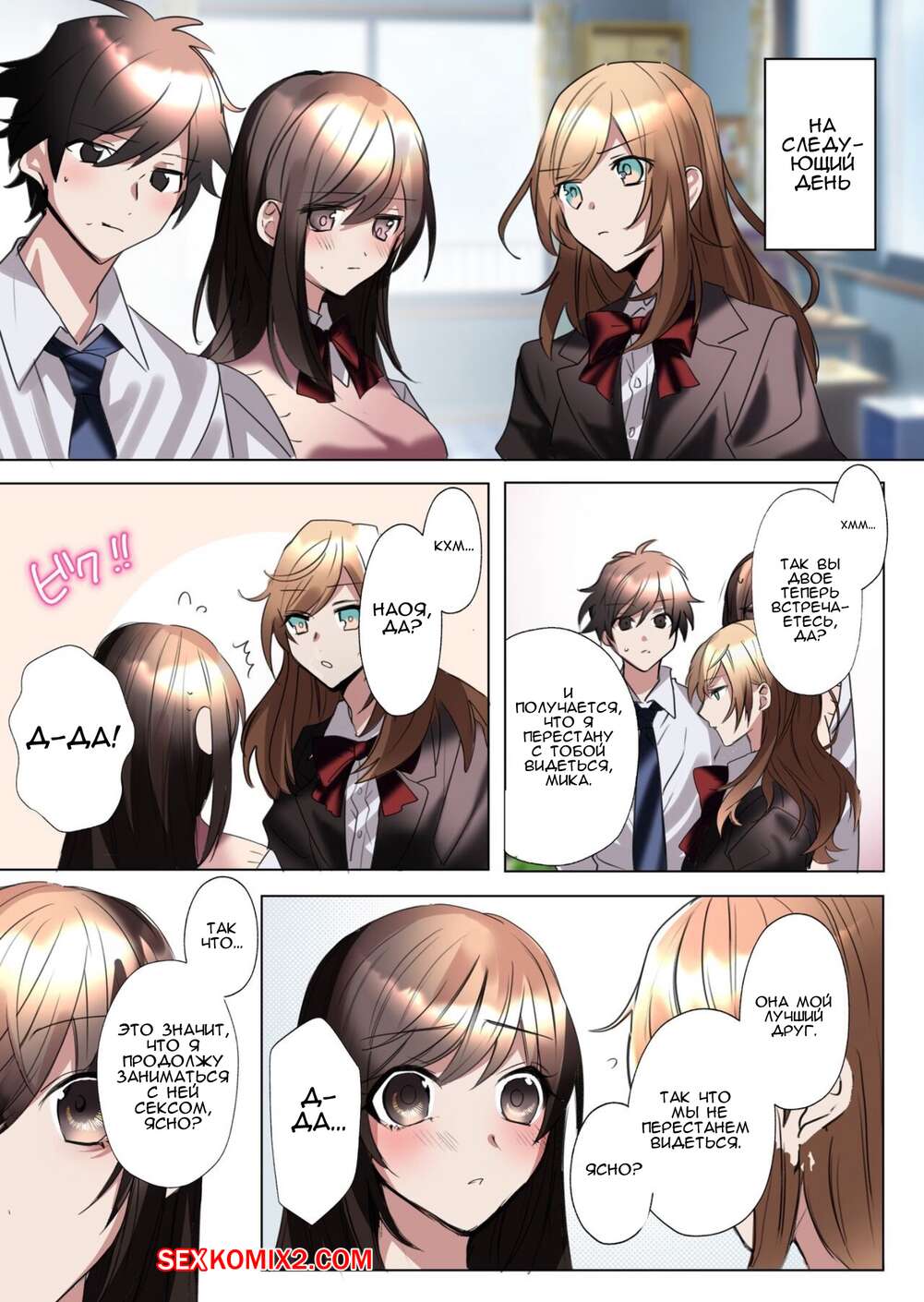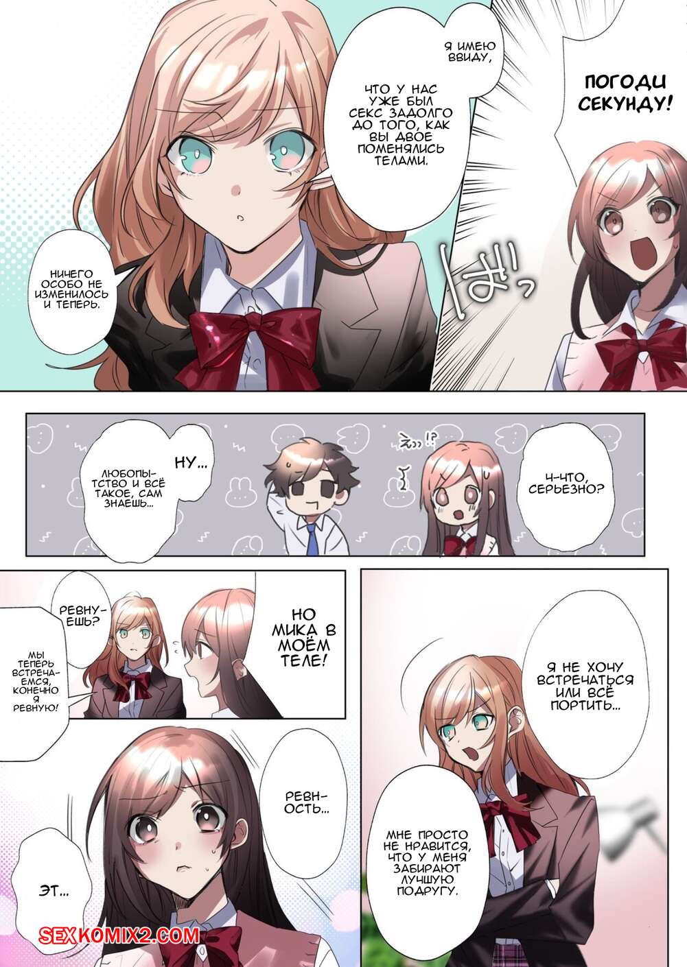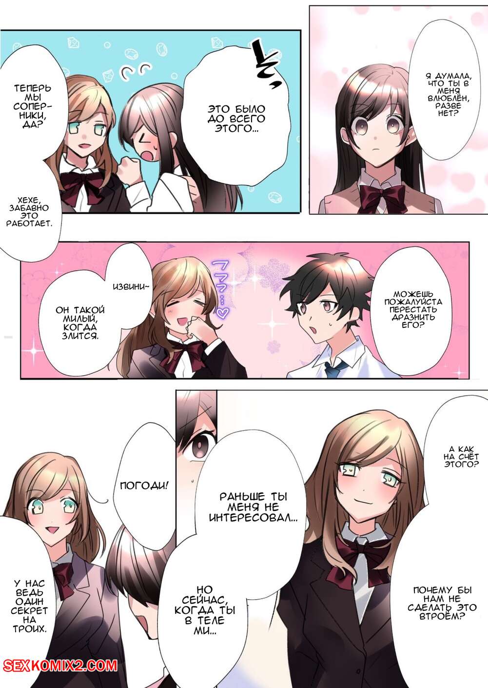 Порно комикс Мой эротический любовный треугольник после обмена телами. hoshino iro Молодой парень меняется телами с сексуальными одноклассницами. Затем девушки раздеваются и сосут большой хуй парня, после чего дают ему себя хорошенько выебать.
